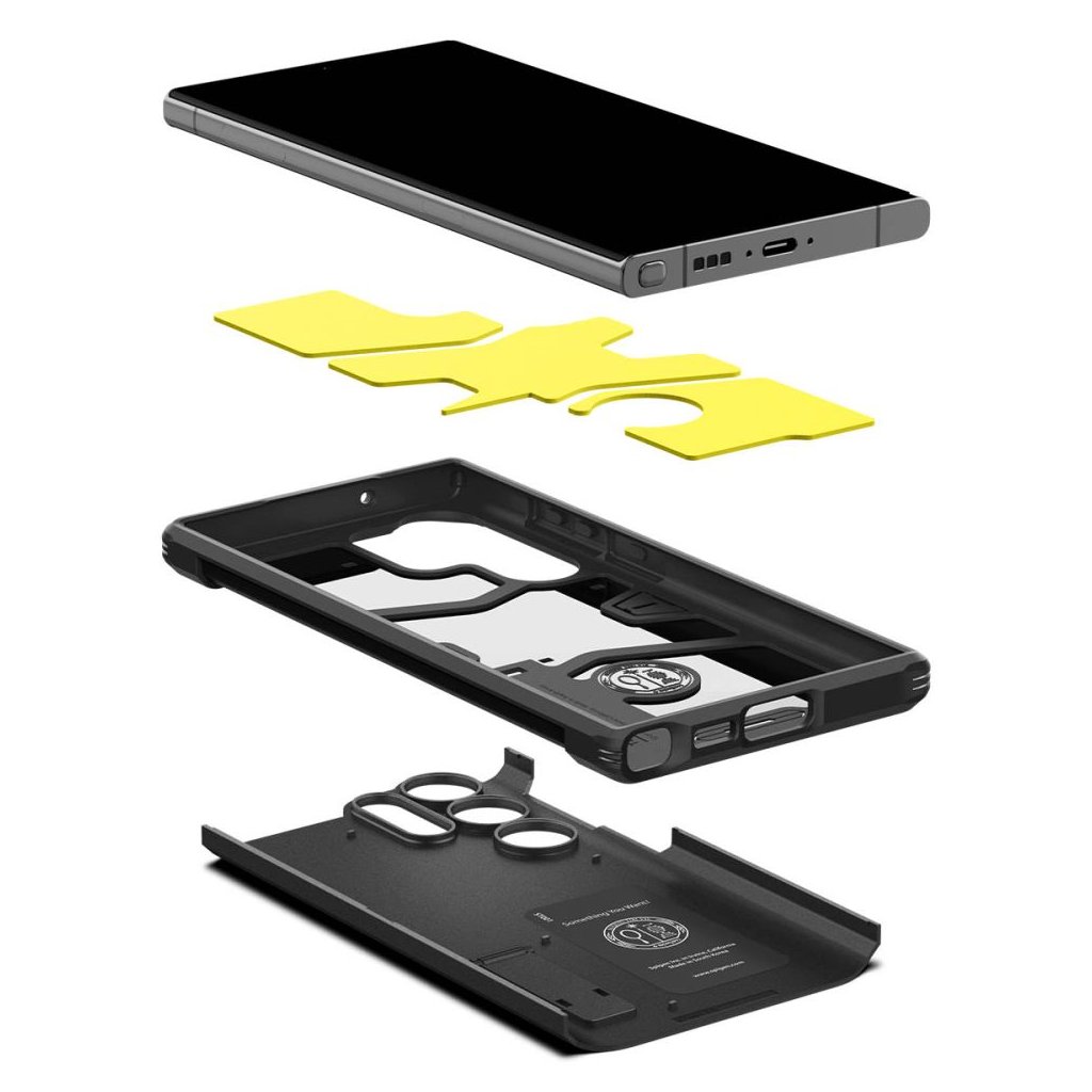 Chráňte svoj Samsung Galaxy S23 Ultra s nekompromisnou silou a elegantným štýlom. Pouzdro Spigen Tough Armor v čiernej farbe je ztelesnením špičkovej ochrany, ktorá bola navrhnutá tak, aby odolala každodenným nástrahám a zároveň zachovala sofistikovaný vzhľad vášho telefónu.