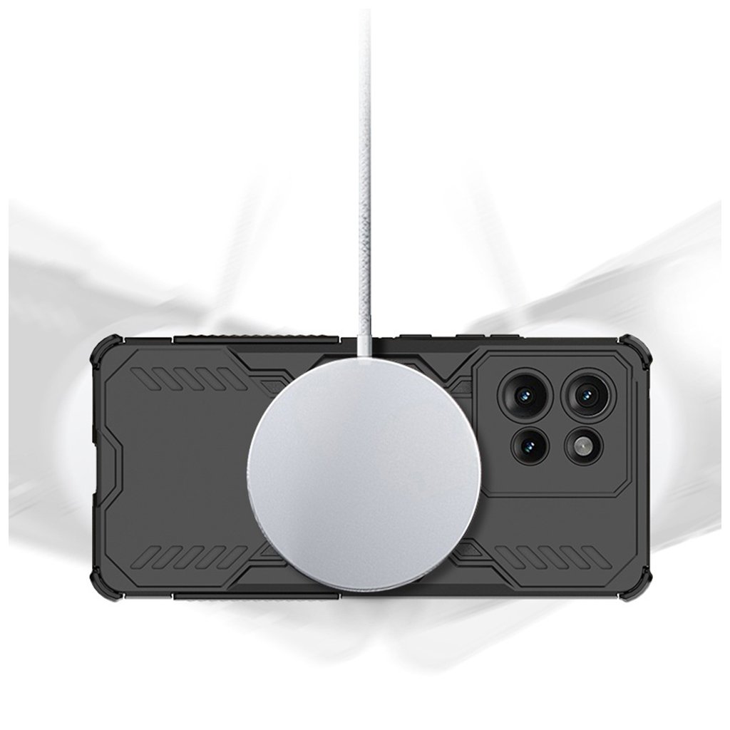 - Na zadnej strane puzdra dominuje integrovaný magnetický krúžok, ktorý je nielen praktickým prvkom pre uchytenie k magnetickým držiakom, ale aj umožňuje bezproblémové bezdrôtové nabíjanie a kompatibilitu s MagSafe príslušenstvom.