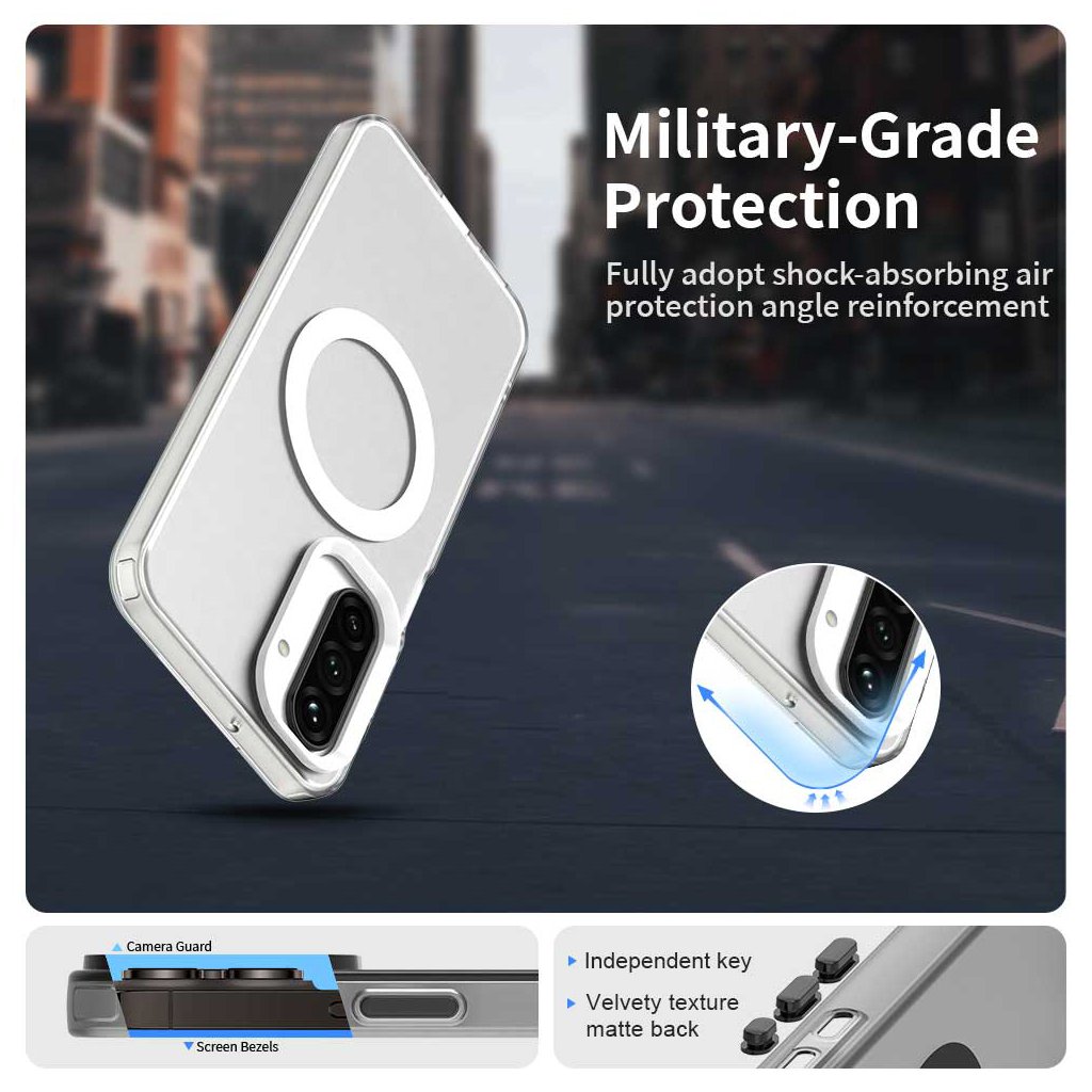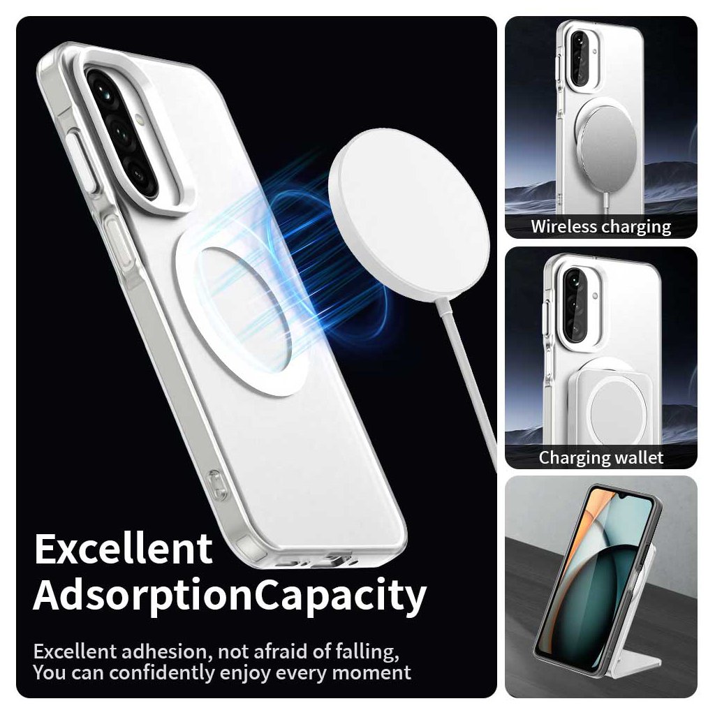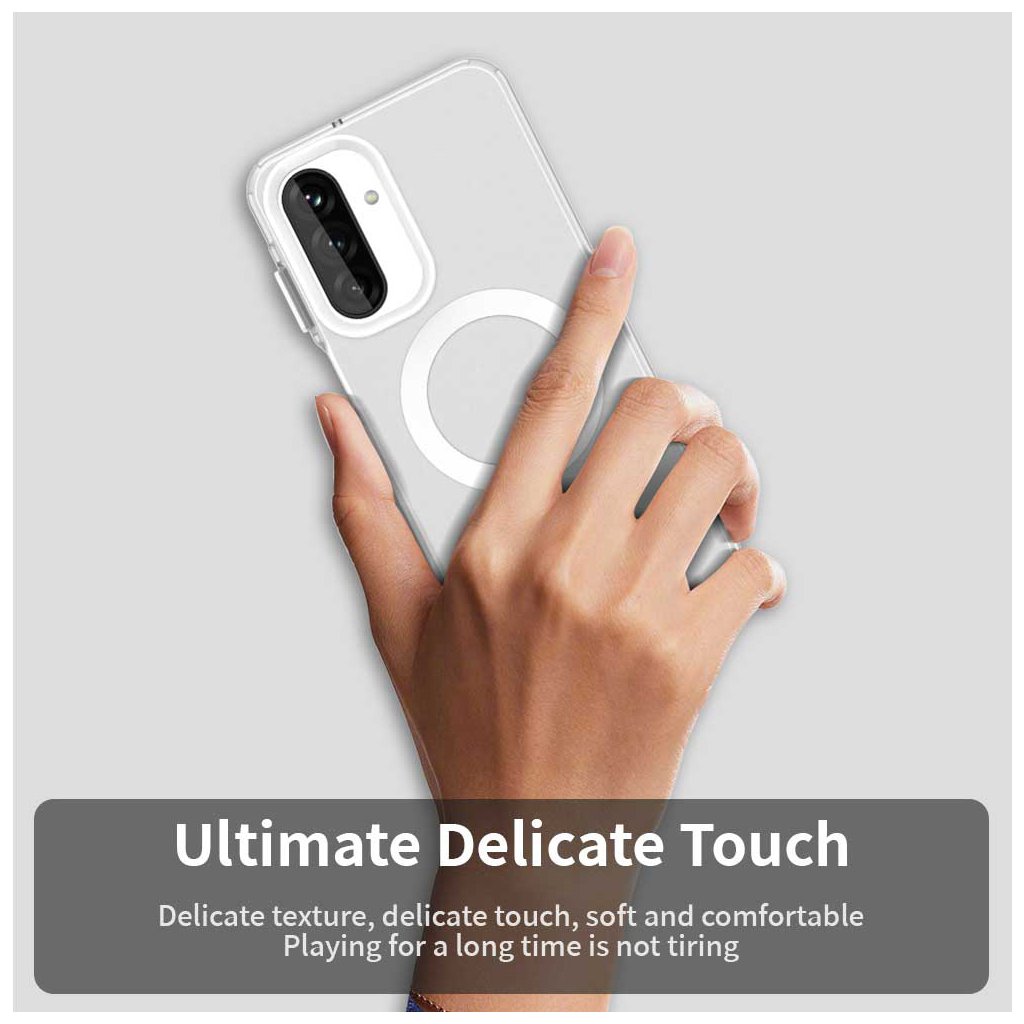 Puzdro Techsuit CandyCase MagSafe sa pýši minimalistickým a vysoko kvalitným dizajnom. Je vyrobené z odolného, transparentného materiálu, ktorý nechá vyniknúť originálnemu vzhľadu vášho Samsungu Galaxy A26 5G. Kľúčovým prvkom je integrovaný biely MagSafe krúžok na zadnej strane, ktorý zaisťuje silnú a spoľahlivú magnetickú adheziu. Vďaka tomu je puzdro plne kompatibilné s bezdrôtovým nabíjaním a MagSafe príslušenstvom, ako sú nabíjacie peňaženky.