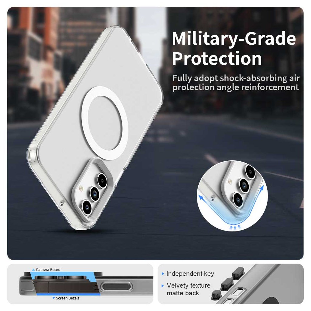 - Integrovaný MagSafe krúžok: Zaisťuje perfektnú priľnavosť a kompatibilitu s MagSafe príslušenstvom, vrátane bezdrôtového nabíjania a magnetických peňaženiek.