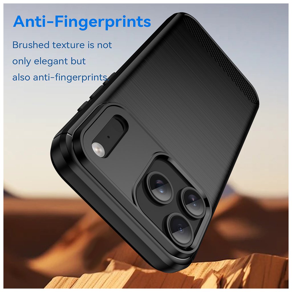 Dizajn puzdra zaujme svojou sofistikovanou estetikou. Zadná strana je opatrená jemnou textúrou imitujúcou brúsený kov, ktorá dodáva puzdru moderný a prémiový vzhľad. V hornej časti je výrazne zvýšená oblasť okolo modulu fotoaparátu, ktorá poskytuje maximálnu ochranu objektívom pred poškriabaním a nárazmi. Spodná časť zadnej strany je doplnená o štýlový prvok s textúrou karbonových vlákien, ktorý podčiarkuje športový a dynamický charakter puzdra. Hladké okraje zabezpečujú pohodlné držanie a jednoduchú manipuláciu s telefónom.
