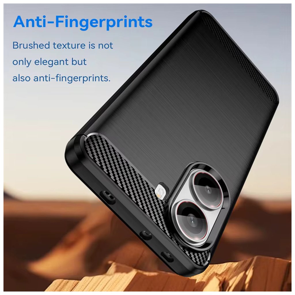 Puzdro Techsuit Carbon Silicone sa pýši sofistikovaným dizajnom, ktorý kombinuje modernú estetiku s praktickou odolnosťou. Zadná strana puzdra je opatrená elegantnou textúrou imitujúcou brúsený kov, ktorá dodáva telefónu prémiový vzhľad a zároveň zlepšuje úchop. Horná a spodná časť, rovnako ako oblasť okolo fotoaparátu, sú zvýraznené dynamickým vzorovaním karbónových vlákien, ktoré nielen skvele vyzerá, ale taktiež pridáva na odolnosti. Vďaka presným výrezom pre konektory, mikrofóny, reproduktory a fotoaparáty je zaistená plná funkčnosť vášho telefónu bez akéhokoľvek obmedzenia. Tlačidlá majú istý stisk a prístup k nabíjaciemu portu je vždy bezproblémový. Puzdro je vyrobené z kvalitného silikónu, ktorý efektívne absorbuje nárazy a chráni telefón pred poškriabaním a pádmi.