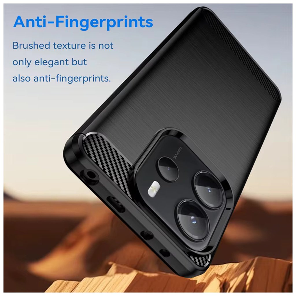 * **Materiál:** Kvalitný silikón s karbónovou textúrou * **Farba:** Čierna * **Ochrana:** Odolnosť proti nárazom, poškriabaniu a každodennému opotrebovaniu * **Dizajn:** Elegantný matný povrch s textúrou brúseného kovu a karbónovými detailmi * **Presné výrezy:** Pre všetky porty, tlačidlá a fotoaparáty * **Zvýšené okraje:** Pre dodatočnú ochranu displeja a fotoaparátu * **Určené pre model telefónu:** Xiaomi Redmi Note 14SDodatočné parametre