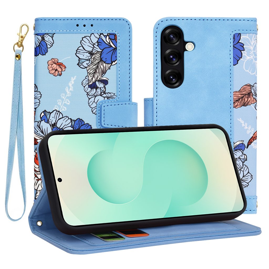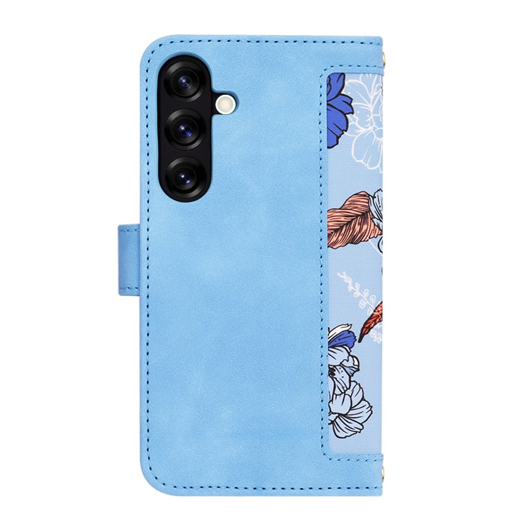 Puzdro FlipCraft sa pýši atraktívnym dizajnom v žiarivo modrej farbe. Vonkajšia strana puzdra je vyrobená z hladkého materiálu pripomínajúceho kožu, zatiaľ čo vnútorná strana a zadná časť, ktorá drží telefón, zdobí jemný kvetinový vzor. Tento vzor kombinuje odtiene modrej, bielej a oranžovo-červenej, čo dodáva puzdru jedinečný a svieži vzhľad.