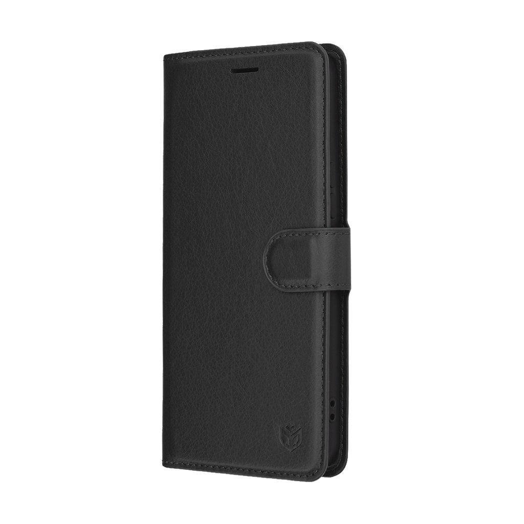 Puzdro Techsuit Leather Folio sa pýši elegantným a minimalistickým dizajnom. Je vyrobené z materiálu s textúrou pripomínajúcou kožu, čo mu dodáva luxusný vzhľad a príjemný pocit na dotyk. Čierna farba zaisťuje univerzálnosť a nadčasovosť, ľahko sa tak hodí k akémukoľvek štýlu. Puzdro je typu "folio", čo znamená, že chráni telefón zo všetkých strán, vrátane displeja, vďaka zatváracej prednej časti.