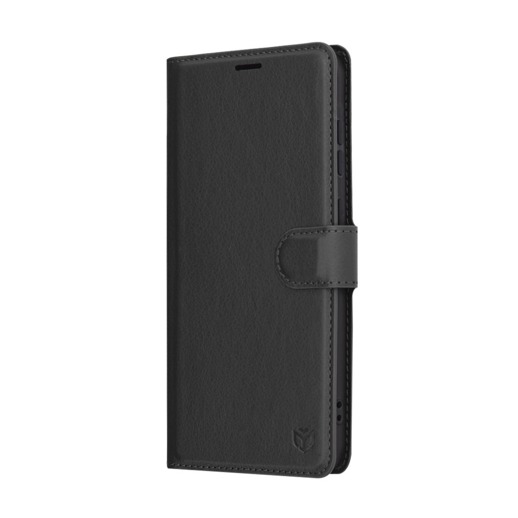 Puzdro Techsuit Leather Folio sa pýši nadčasovým dizajnom, ktorý podčiarkuje eleganciu vášho telefónu. Jeho vonkajšia strana je vyrobená z materiálu s jemnou textúrou imitujúcou kožu, čo mu dodáva sofistikovaný vzhľad a príjemný pocit na dotyk. Čierna farba je univerzálna a hodí sa ku každému štýlu. Puzdro je typu "folio", čo znamená, že chráni telefón zo všetkých strán, vrátane displeja, vďaka uzatvárateľnej prednej klapke. Táto klapka je opatrená diskrétnym magnetickým uzáverom, ktorý zaisťuje, že puzdro zostane bezpečne zatvorené. Vo vnútri puzdra nájdete praktické priehradky na platobné karty alebo bankovky, čo z neho robí ideálneho spoločníka pre tých, ktorí chcú mať všetko dôležité pohromade. Vďaka premyslenej konštrukcii je možné puzdro ľahko zložiť do praktického stojanu, ideálneho pre sledovanie videí alebo videohovory.