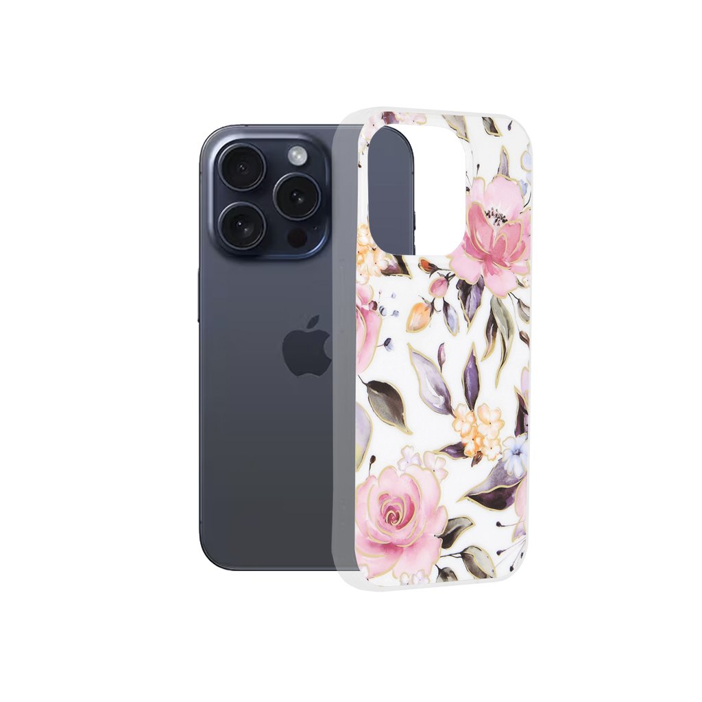 Puzdro Chloe White sa pýši nádherným kvetinovým motívom, ktorý dodá vášmu telefónu jedinečný a sofistikovaný vzhľad. Na priehľadnom podklade sa rozprestierajú jemné ružové ruže, doplnené drobnými modrými a oranžovými kvetmi a elegantnými zelenofialovými listami. Celý motív je navyše zvýraznený decentnými zlatými obrysmi, ktoré dodávajú puzdru luxusný nádych. Tento dizajn nielen chráni, ale aj podčiarkuje krásu vášho zariadenia a stane sa štýlovým doplnkom pre každú príležitosť.