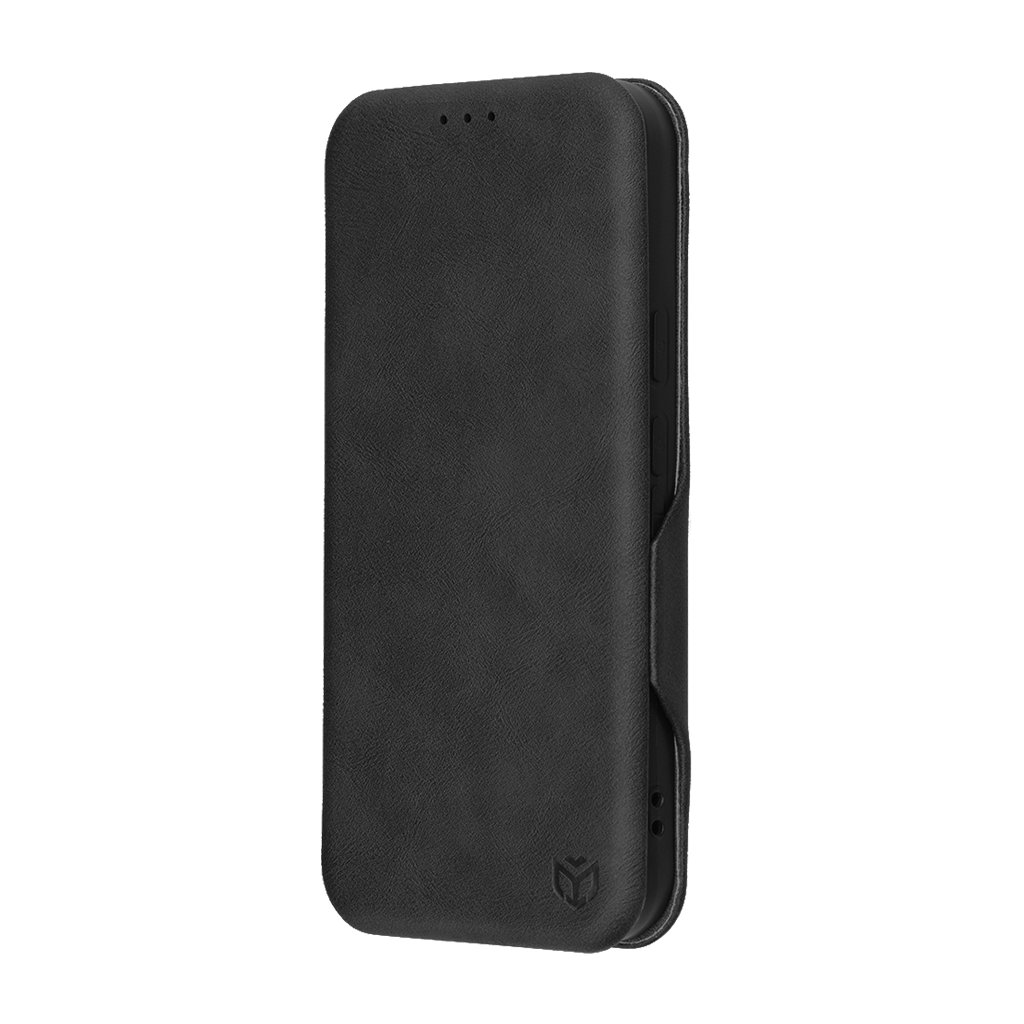 Puzdro sa pýši minimalistickým a sofistikovaným dizajnom v elegantnej čiernej farbe, ktorá dodáva vášmu telefónu profesionálny vzhľad. Vonkajší povrch je vyrobený z kvalitného materiálu s jemnou textúrou, pripomínajúcou kožu, čo zaisťuje príjemný pocit na dotyk a zároveň zvyšuje odolnosť proti opotrebovaniu. Diskrétne logo Techsuit je decentne umiestnené v pravom dolnom rohu prednej strany.
