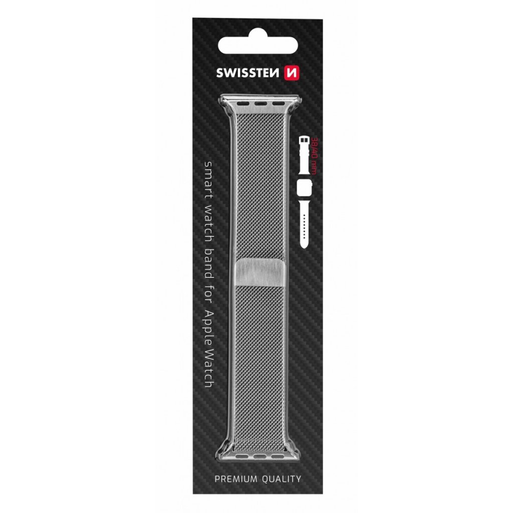 Remienok Swissten pre Apple Watch milánský 38-40 mm strieborný