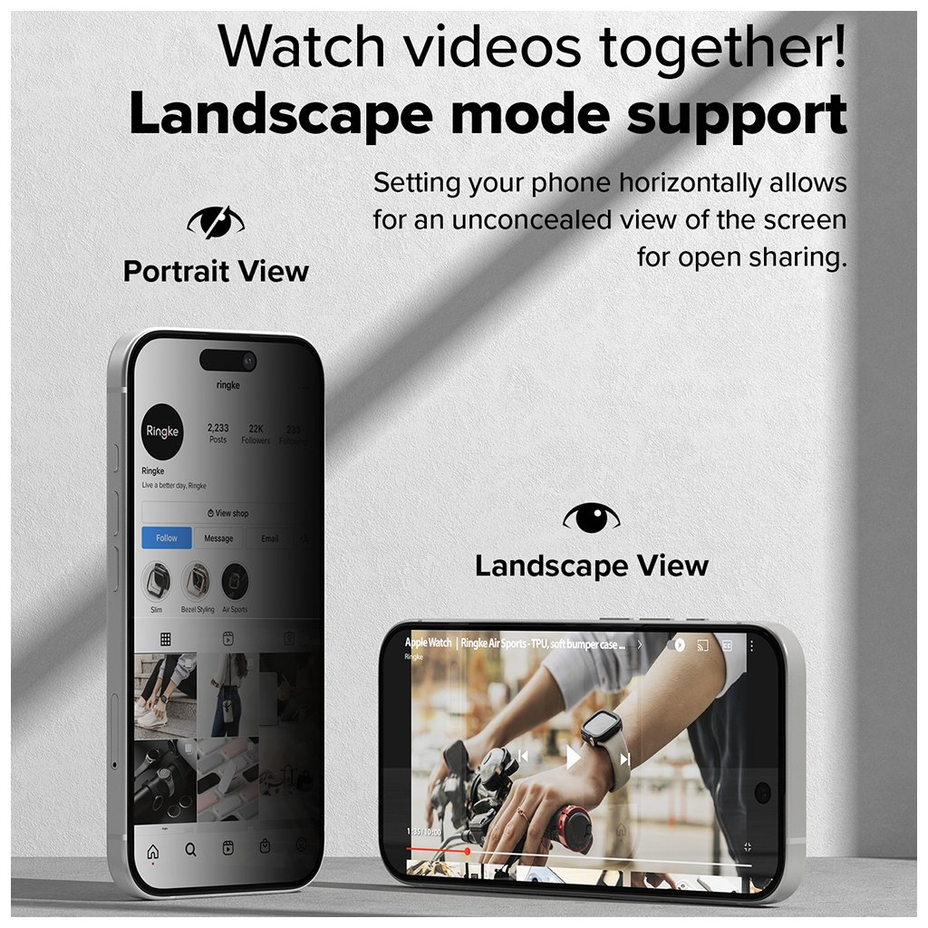Najvýraznejšou funkciou je ochrana súkromia. Sklo efektívne stmavuje obrazovku z uhla 28 stupňov a viac, čím zabraňuje zvedavým pohľadom zboku a chráni vaše osobné informácie. Napriek tomu si zachováva plnú viditeľnosť displeja pri priamom pohľade. Unikátna je aj podpora režimu na šírku: pri otočení telefónu do horizontálnej polohy sa funkcia súkromia deaktivuje a obrazovka je plne viditeľná pre zdieľanie obsahu s priateľmi.