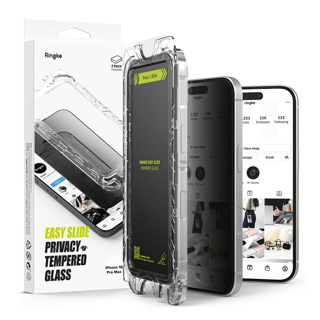 Ringke Easy Slide tvrdené sklo (2 ks) iPhone 16 Pro Max súkromie