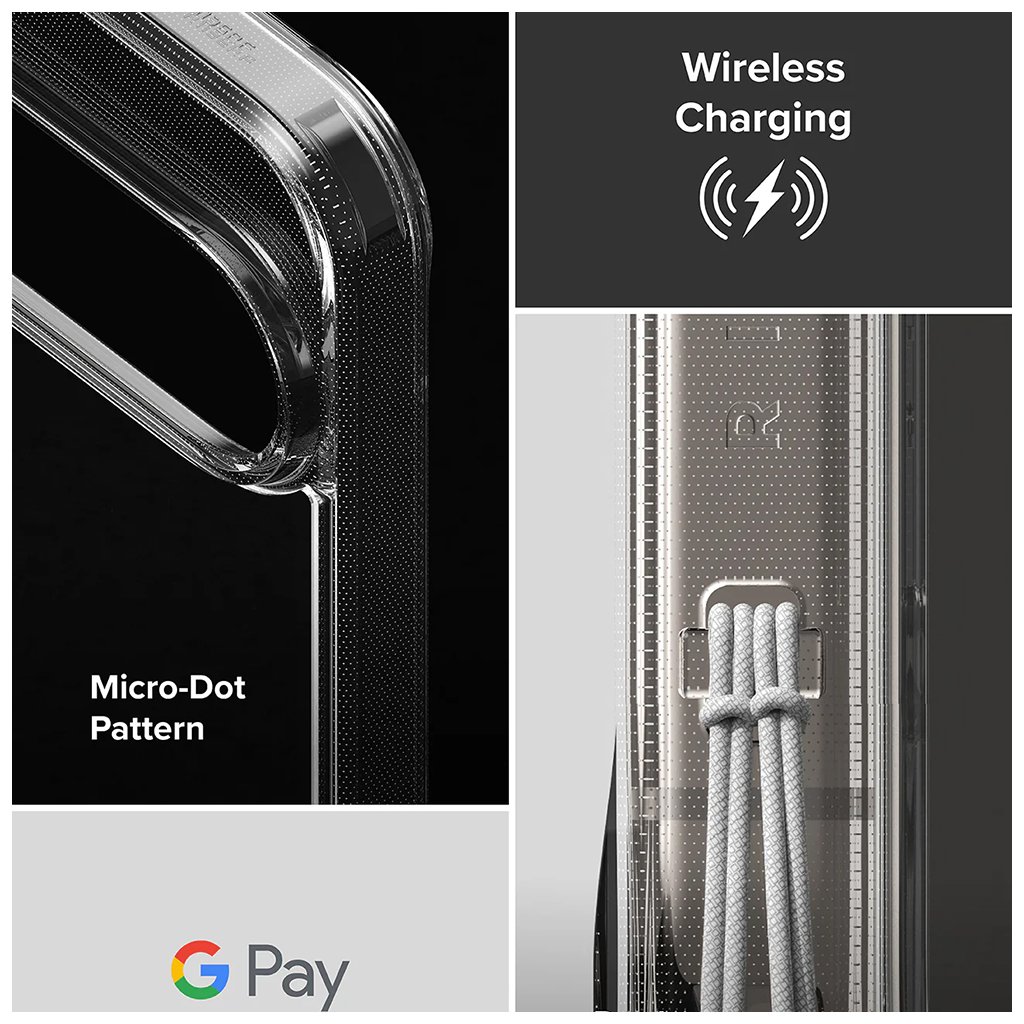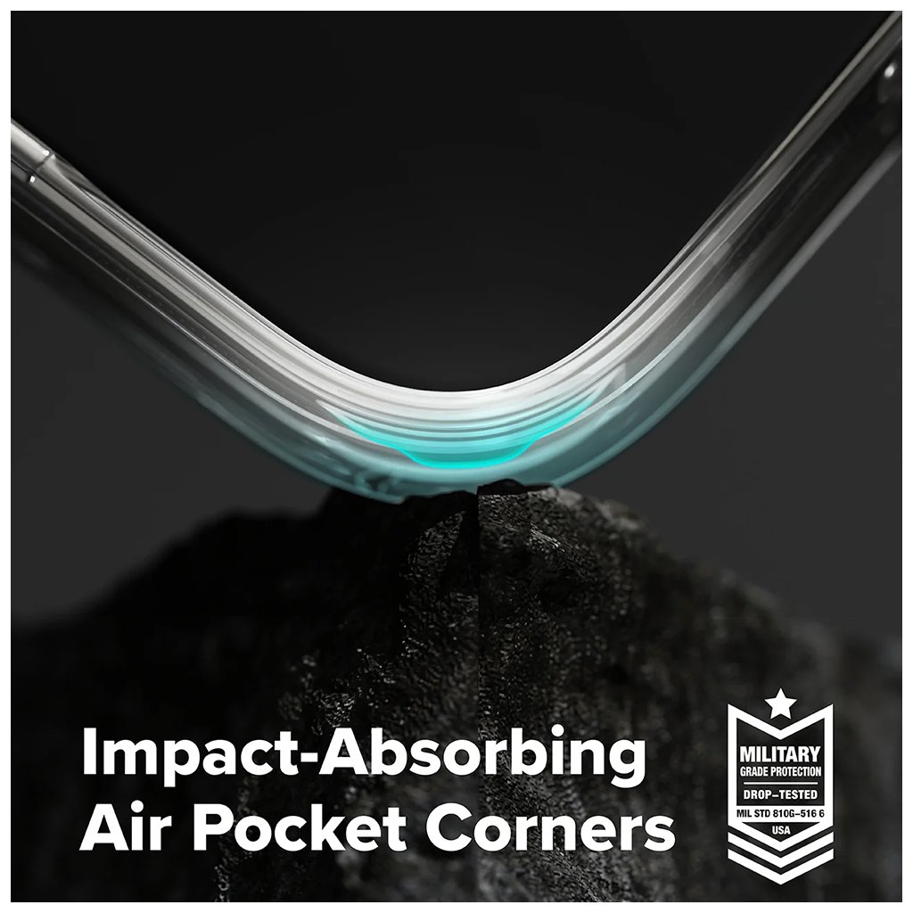 Puzdro je navrhnuté s dôrazom na detail a maximálnu bezpečnosť. Disponuje zvýšenými okrajmi okolo displeja (1,5 mm) a fotoaparátu (1,2 mm), čo zaisťuje ochranu týchto najcitlivejších častí pred poškriabaním pri položení na rovný povrch. Špeciálne vzduchové vankúše v rohoch (Air Pocket Corners) poskytujú dodatočnú absorpciu nárazov a spĺňajú prísne štandardy vojenskej certifikácie MIL STD 810G-516.6 pre ochranu proti pádům.
