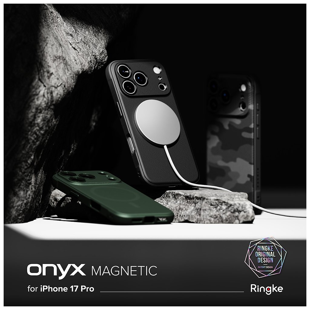 Predstavujeme Ringke Onyx MagSafe, prémiové ochranné puzdro navrhnuté exkluzívne pre iPhone 17 Pro. Toto puzdro v elegantnej tmavozelenej farbe kombinuje robustnú ochranu s moderným dizajnom a plnou kompatibilitou s technológiou MagSafe, čo z neho robí ideálneho spoločníka pre váš telefón.