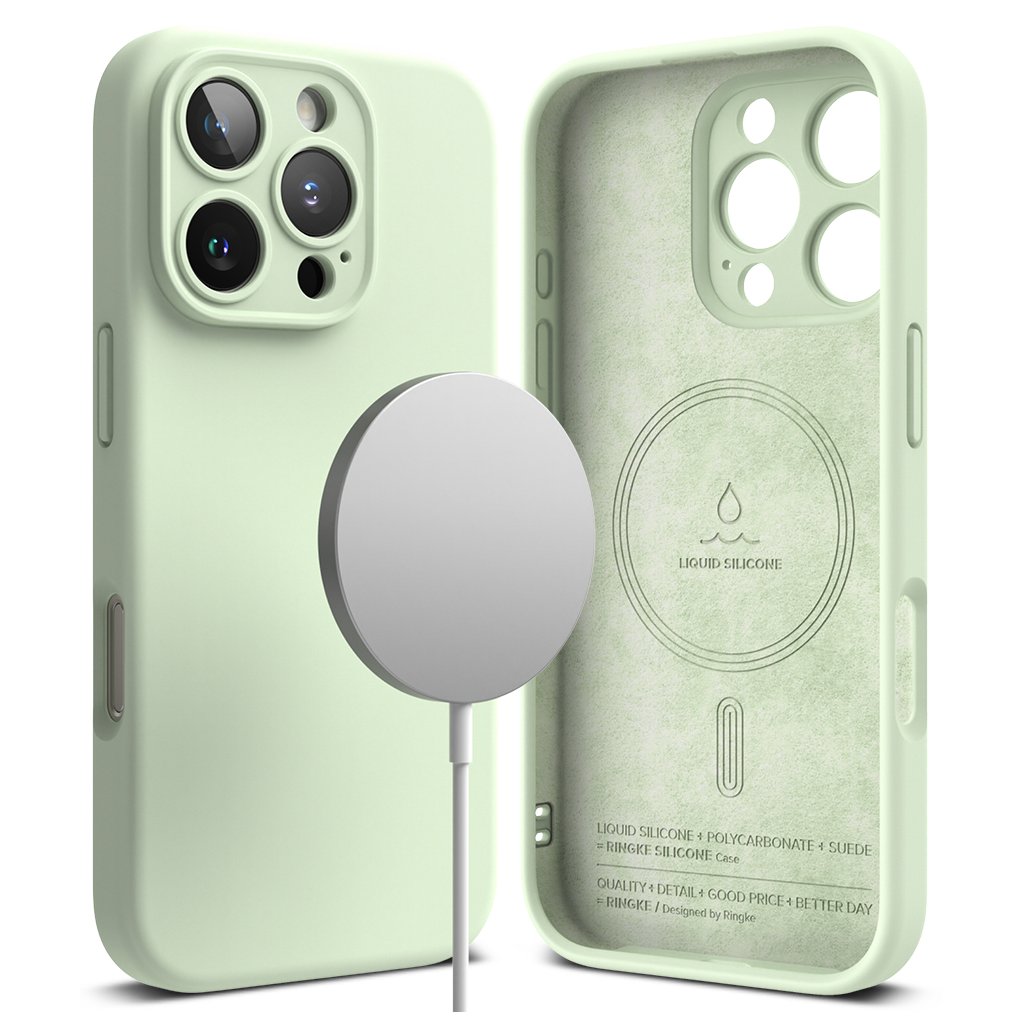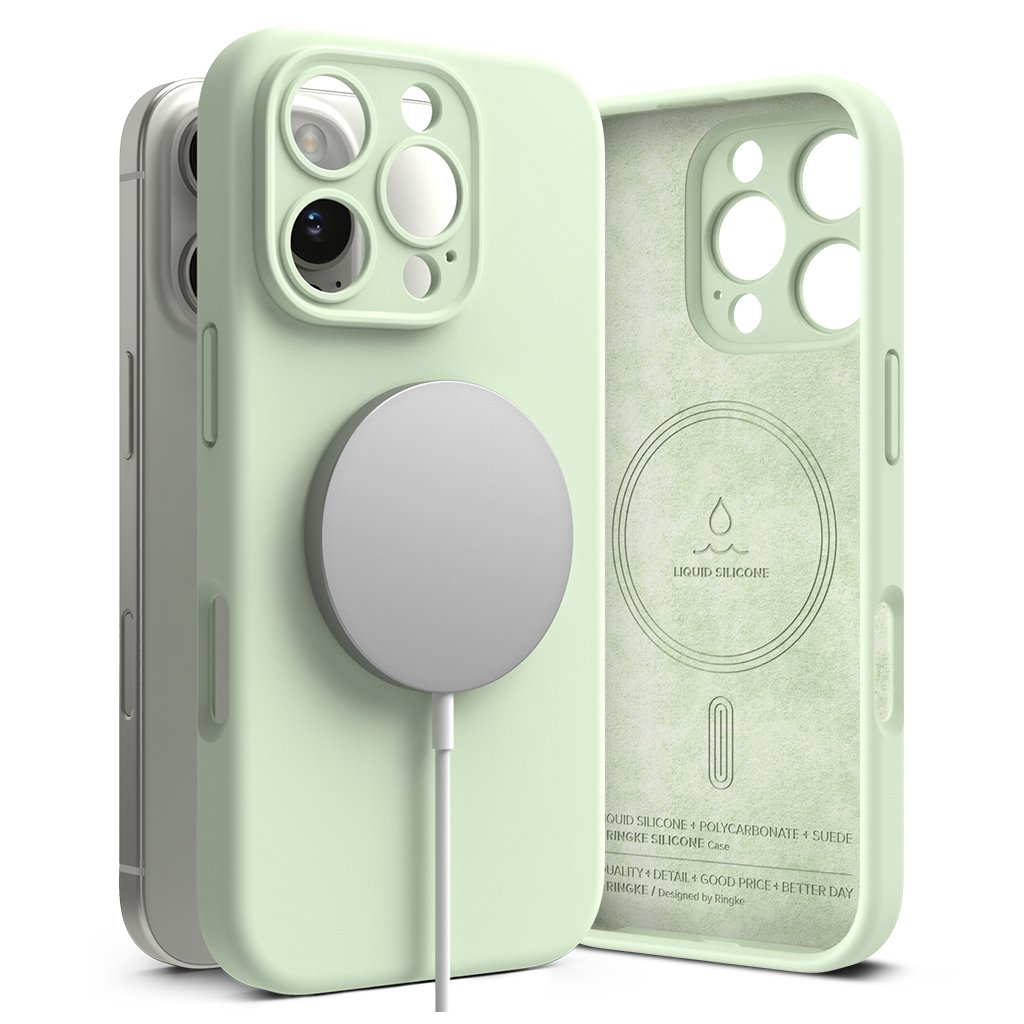 Ringke Silikónový Magnetický MagSafe pre iPhone 16 Pro Max v jemnej mätovej Predstavujeme Ringke Silikónový Magnetický MagSafe kryt, ktorý dokonale kombinuje elegantný dizajn, spoľahlivú ochranu a modernú funkčnosť pre váš iPhone 16 Pro Max. Tento kryt v očarujúcej jemnej mätovej farbe dodá vášmu telefónu svieži a štýlový vzhľad, zatiaľ čo zaistí jeho bezpečie.Dizajn a parametre