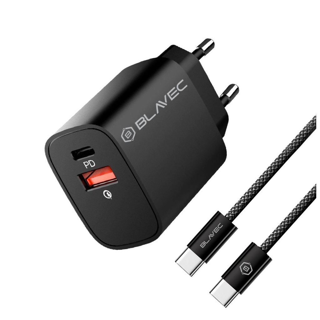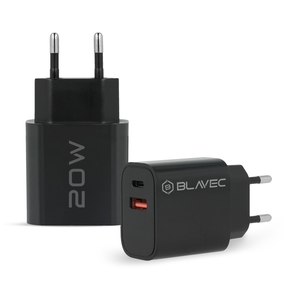 Rýchlonabíjačka Blavec BC2 s dátovým USB-C káblom, duálna 20 W (TCBC2-UCB20+CC) čiernaBlavec BC2 — Rýchla nabíjačka s duálnym rýchlym nabíjaním a USB-C káblom