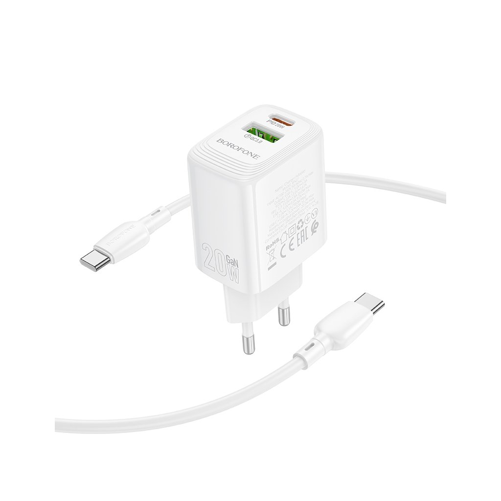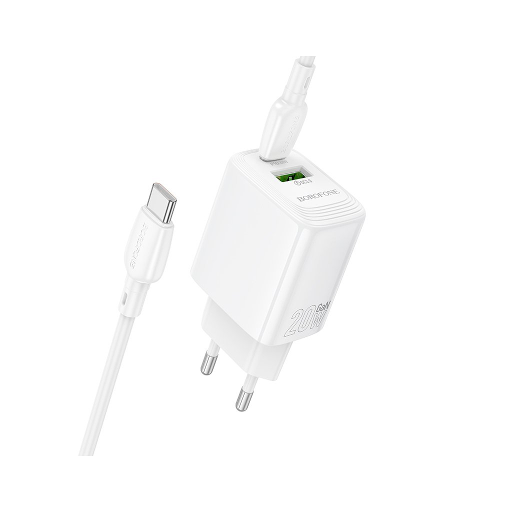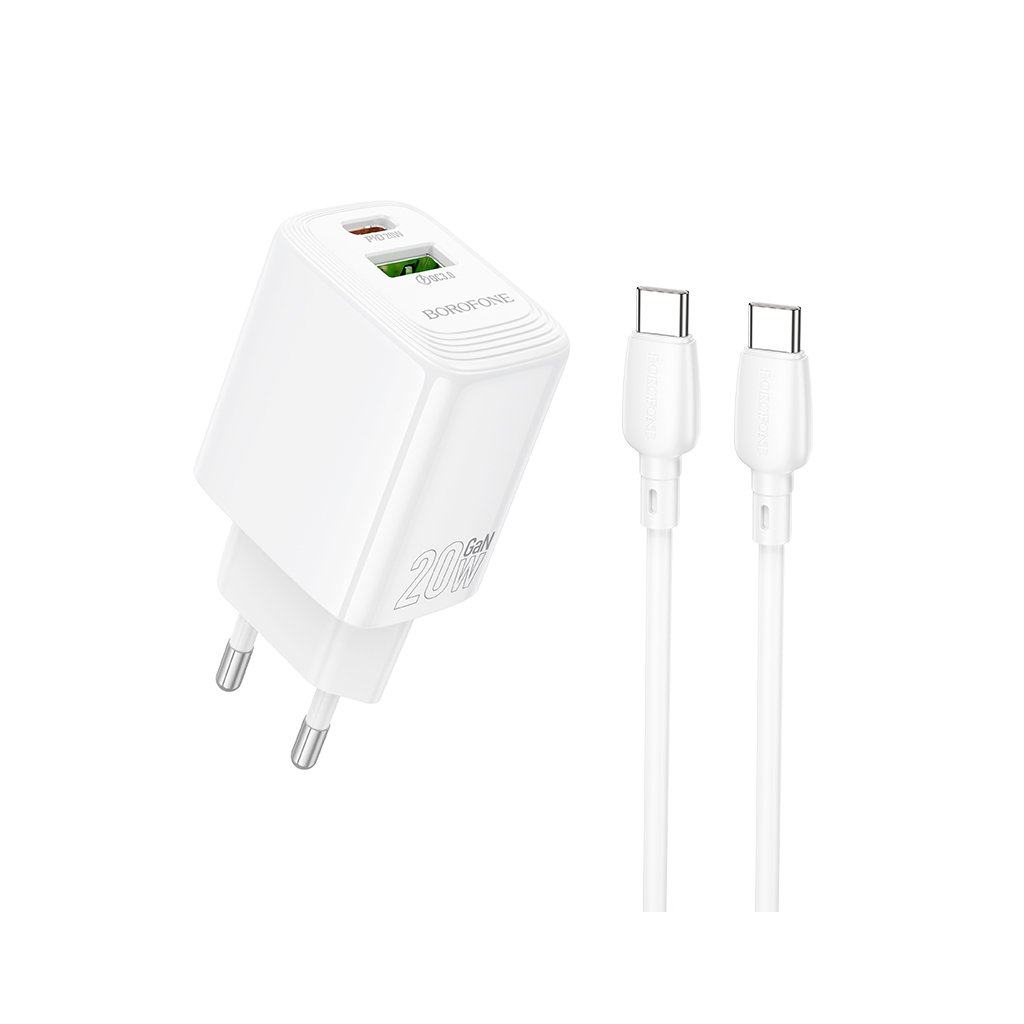 Rýchlonabíjačka Borofone BN27 Fuente s dátovým káblom USB-C 20W Dual biela
