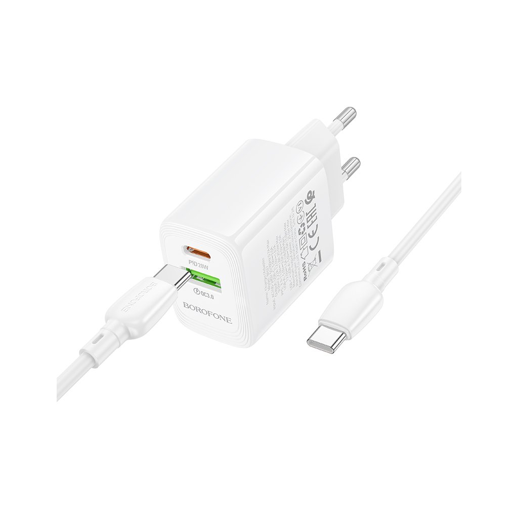 Rýchlonabíjačka Borofone BN27 Fuente s dátovým káblom USB-C 20W Dual - bielaRýchlonabíjačka Borofone BN27 Fuente s dátovým káblom USB-C 20W Dual - biela