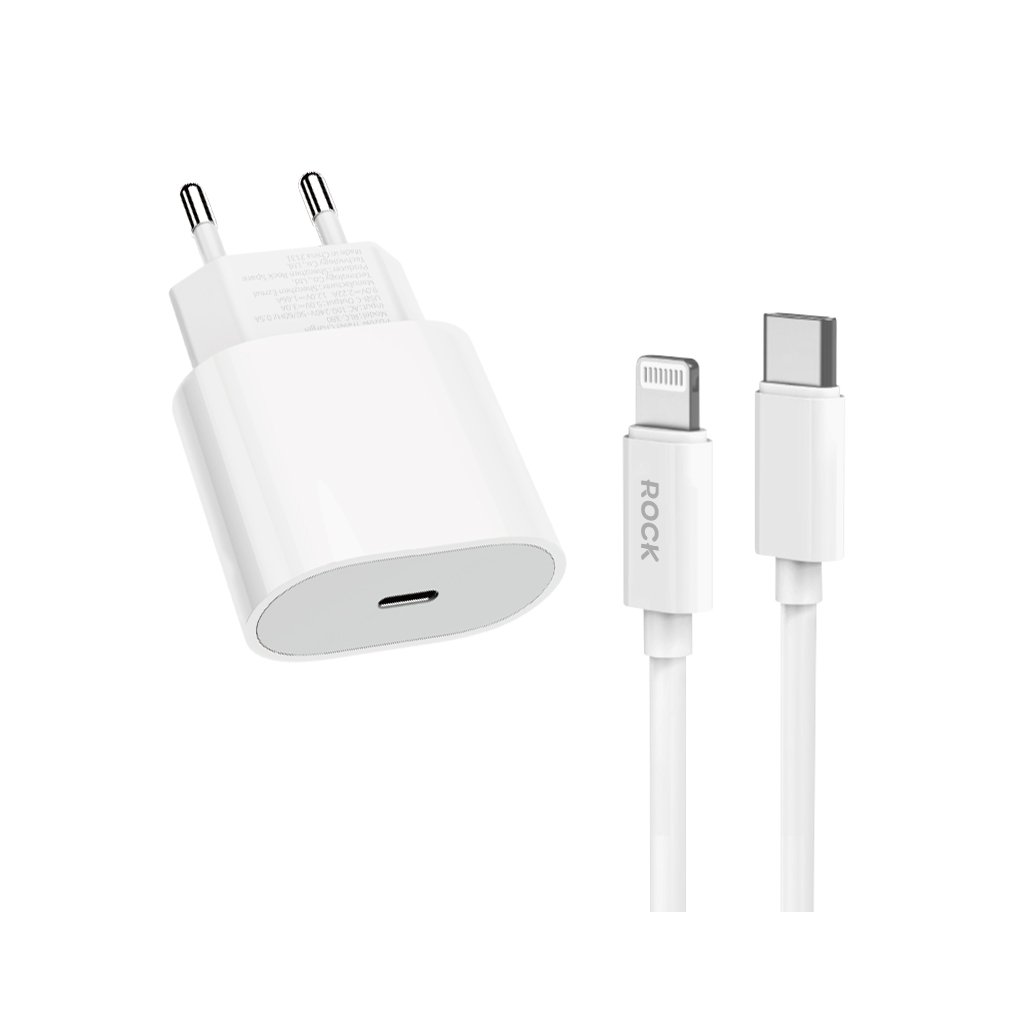 Rýchlonabíjačka Rock T18 Sugar Cube Series GaN s dátovým káblom Lightning 20 W bielaRýchlonabíjačka Rock T18 Sugar Cube Series GaN s dátovým káblom Lightning 20 W biela