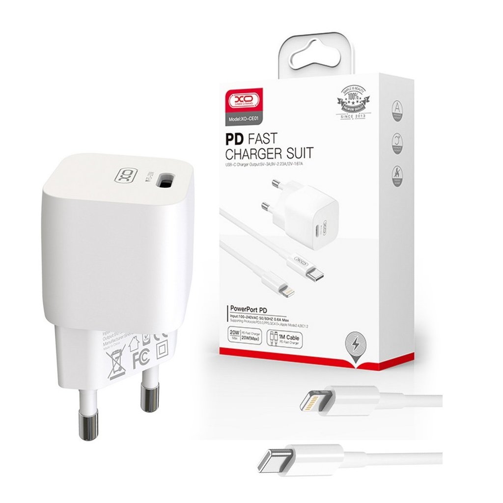 Rýchlonabíjačka XO CE01 vrátane dátového kábla Lightning 20 W biela