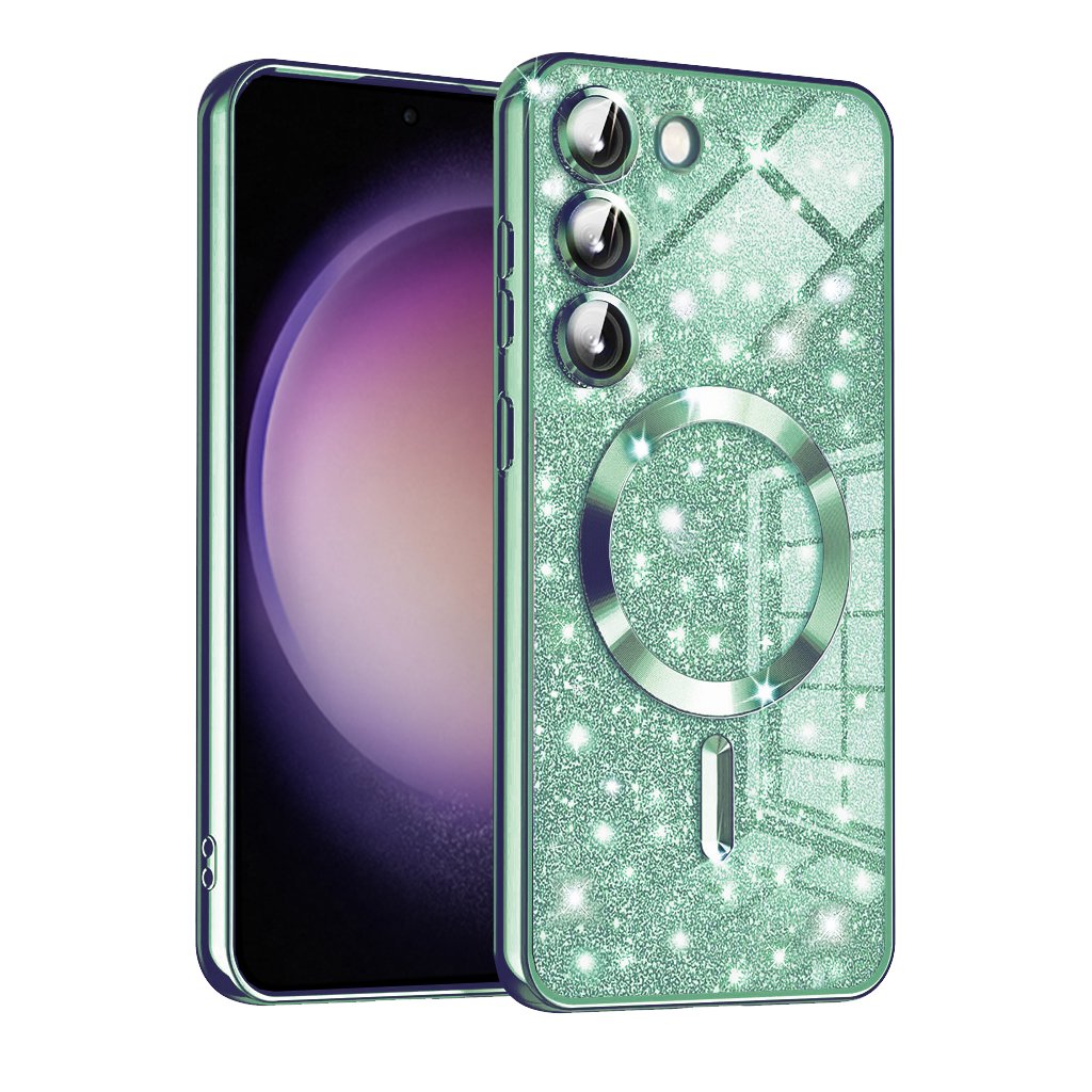 Trblietavý MagSafe Ochranný Kryt pre Samsung Galaxy S23 Plus, Svetlozelený