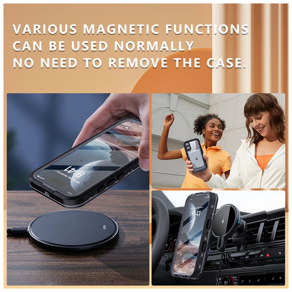 Toto puzdro sa pýši viacvrstvovou konštrukciou, ktorá kombinuje pružné TPU pre absorpciu nárazov a pevný polykarbonát (PC) pre štrukturálnu pevnosť. Poskytuje kompletnú 360° ochranu, vrátane integrovaného chrániča obrazovky, ktorý zaisťuje vysokú citlivosť dotyku a podporu Face ID. Dizajn puzdra je funkčný a zároveň estetický – čierne, robustné okraje s protišmykovou úpravou zaisťujú pevný úchop a minimalizujú riziko vykĺznutia telefónu z ruky. Zadná strana je priehľadná, čo umožňuje vyniknúť originálnemu dizajnu vášho iPhone 16 a zároveň je plne kompatibilná s MagSafe príslušenstvom, vrátane bezdrôtového nabíjania a magnetických držiakov, bez toho, aby ste museli puzdro dávať dole.