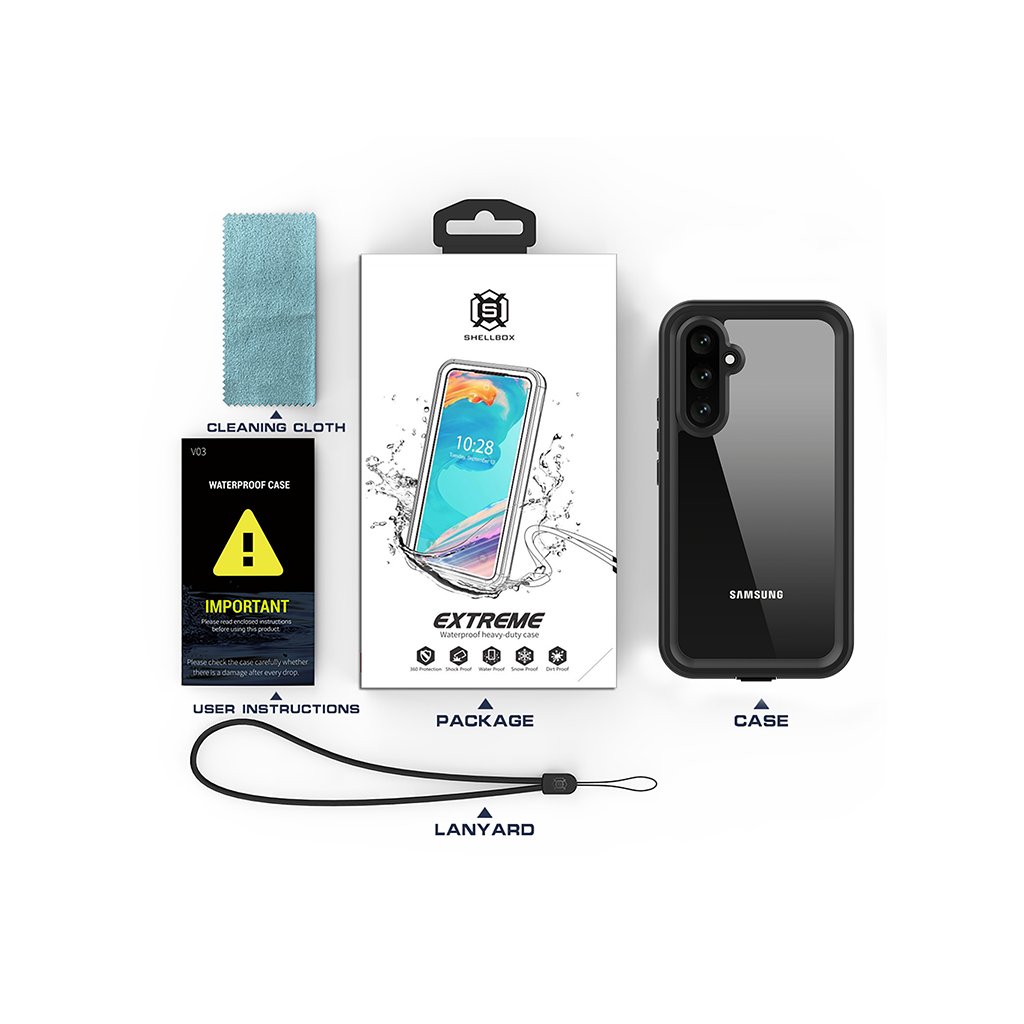 **ShellBox Vodotesné puzdro IP68 pre Samsung Galaxy A54 – čierne** Predstavujeme vám **ShellBox** vodotesné puzdro IP68, navrhnuté pre maximálnu ochranu vášho telefónu Samsung Galaxy A54 v akýchkoľvek podmienkach. Či už sa chystáte na dobrodružstvo do prírody, k vode, alebo len hľadáte spoľahlivú ochranu pre každodenné používanie, toto puzdro je ideálnou voľbou. **Neprekonateľná ochrana a parametre**- **Certifikácia:** IP68 (úplná vodotesnosť a prachotesnosť)