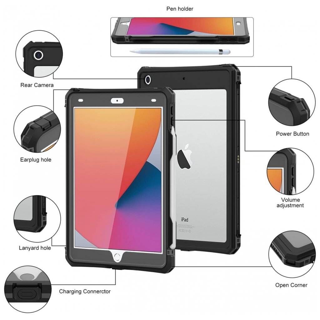 ShellBox Vodotesné IP68 puzdro na iPad 10.2" (201920202021) Black