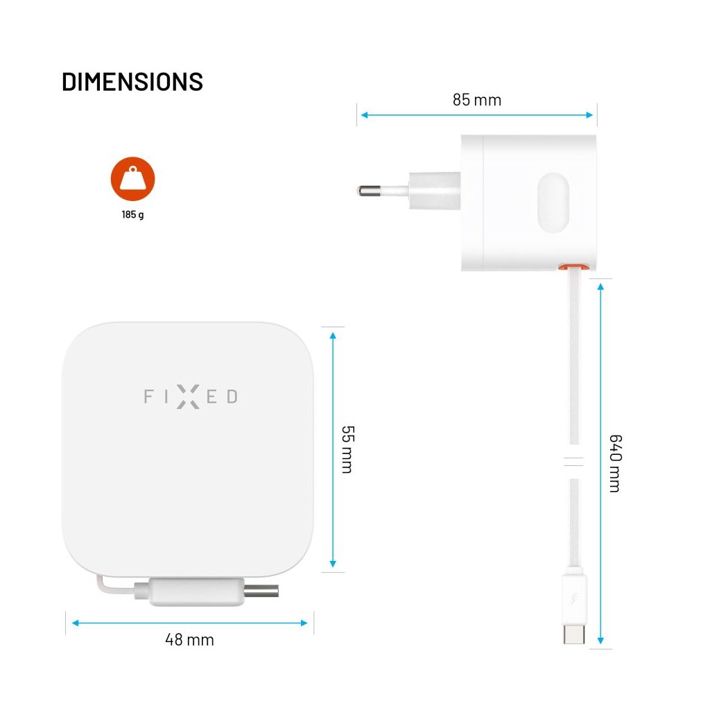 - 1× Sieťová GaN nabíjačka FIXED 2×USB‑C (biela)