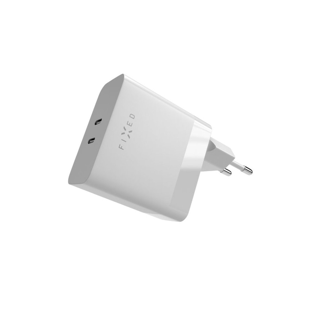 Adaptér FIXED s výstupom 2x USB-C a podporou PD 65 W - Biely
