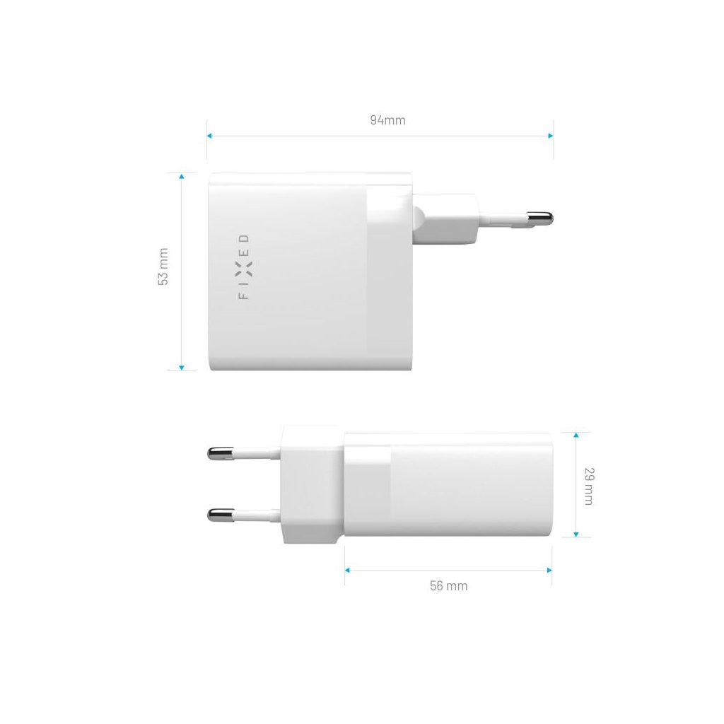 Predstavujeme vám výkonnú sieťovú nabíjačku FIXED PD 65, ktorá sa postará o rýchle a bezpečné nabíjanie vášho notebooku, tabletu, smartfónu a ďalšej elektroniky. S dvojicou portov USB-C a celkovým výkonom 65 W dokáže nabíjať až dve zariadenia súčasne. Oba porty podporujú technológie Power Delivery 3.0 a Samsung Super Fast Charge 2.0, čo zaručuje dostatok energie pre najnovšie smartfóny, bezdrôtové nabíjačky MagSafe, nabíjacie stanice, notebooky a tablety od rôznych výrobcov.