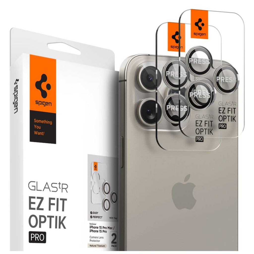 Spigen Optik.tR EZ Fit Pro Camera Glass 2 kusy iPhone 14 15 16 Pro Max Ochrana fotoaparátu
