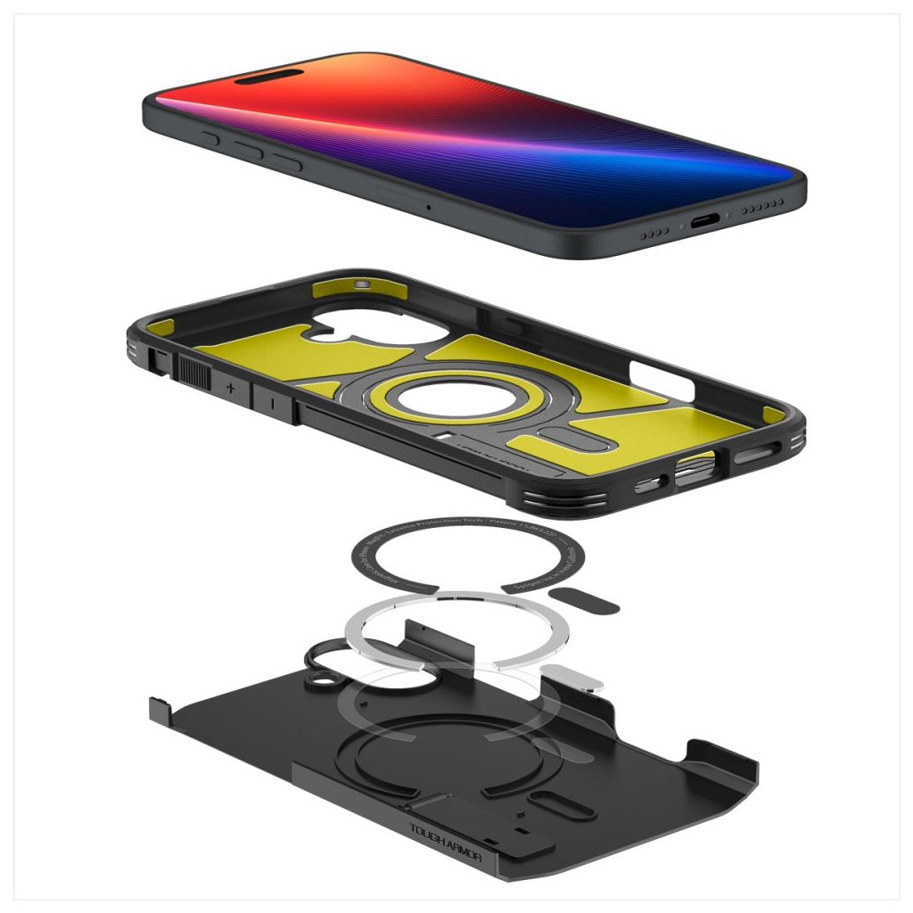 - Jednou z kľúčových vlastností je integrovaná kompatibilita s MagSafe. Vo vnútri krytu je zabudovaný silný magnetický krúžok, ktorý zaisťuje bezpečné a stabilné pripojenie k MagSafe príslušenstvu, ako sú nabíjačky alebo peňaženky.
