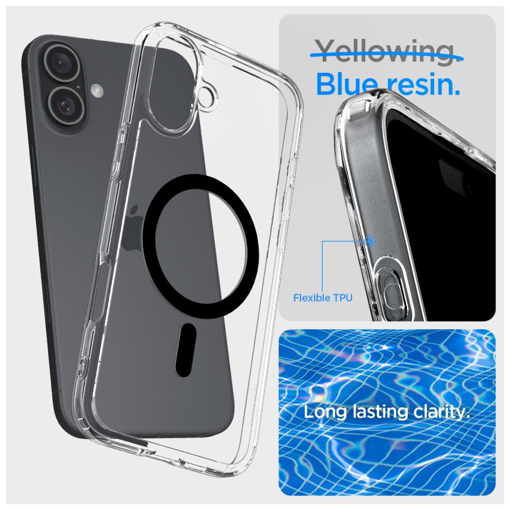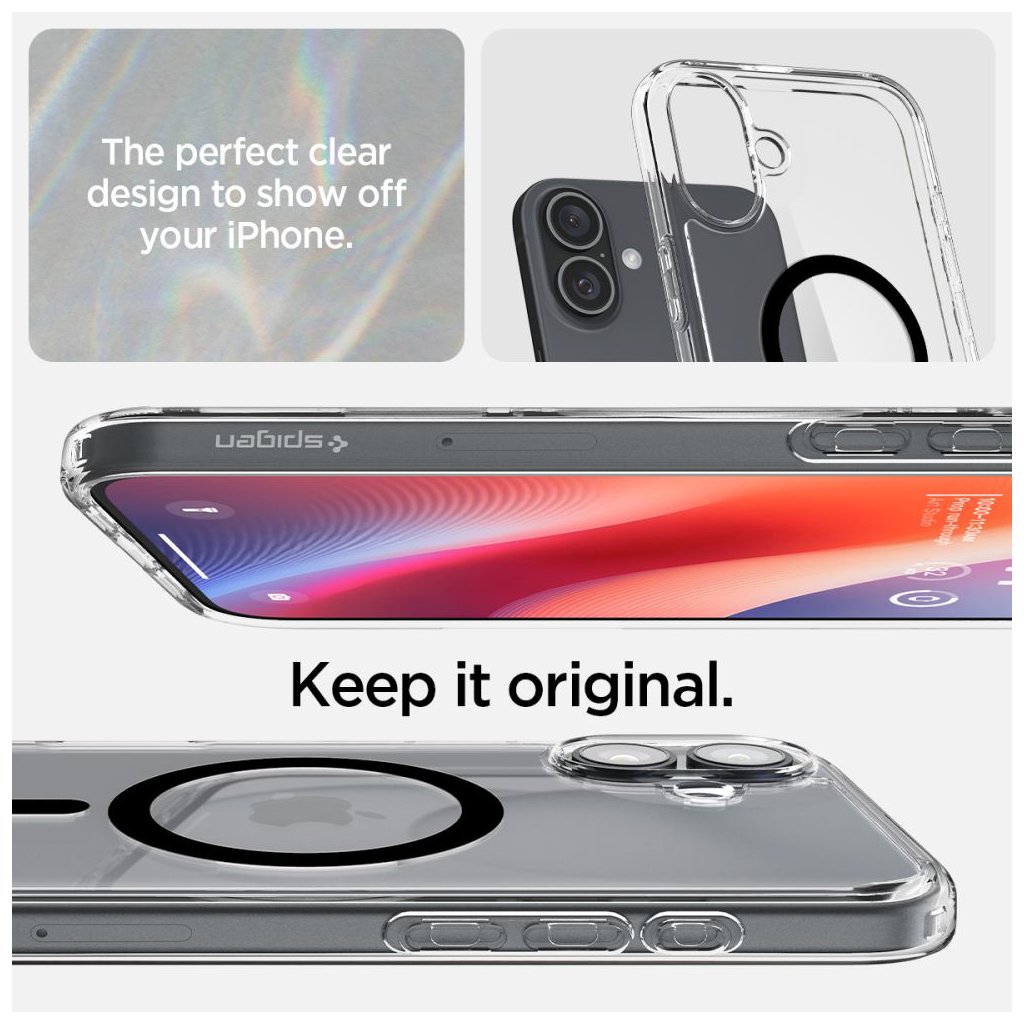 Spigen Ultra Hybrid MagSafe pre iPhone 16 Plus čierny Predstavujeme Spigen Ultra Hybrid MagSafe – dokonalú kombináciu ochrany a minimalistického dizajnu pre váš iPhone 16 Plus. Tento kryt v elegantnej čiernej farbe je navrhnutý tak, aby spoľahlivo chránil váš telefón a zároveň nechal vyniknúť jeho originálnu krásu. O značke Spigen Spigen je globálnym lídrom v oblasti mobilného príslušenstva, založeným v roku 2004. Pôvodom juhokórejská spoločnosť, teraz so sídlom v USA (Irvine, Kalifornia), si vybudovala reputáciu na precíznosti a neustálych inováciách. Samotný názov "Spigen" je šikovnou kombináciou dvoch nemeckých slov: "Spiegel" (zrkadlo) a "Gen" (gén). Táto kombinácia dokonale vystihuje filozofiu firmy: vytvárať riešenia (gény), ktoré dokonale reflektujú (zrkadlia) potreby zákazníkov a prispôsobujú sa neustále sa meniacemu svetu technológií. Kryty Spigen sú celosvetovo cenené pre svoju dokonalú rovnováhu medzi špičkovou ochranou a minimalistickým, funkčným dizajnom. Dizajn a ochrana Kryt Ultra Hybrid MagSafe sa vyznačuje:- Krištáľovo čistým prevedením, ktoré umožňuje plne vyniknúť originálnemu dizajnu vášho iPhone 16 Plus.