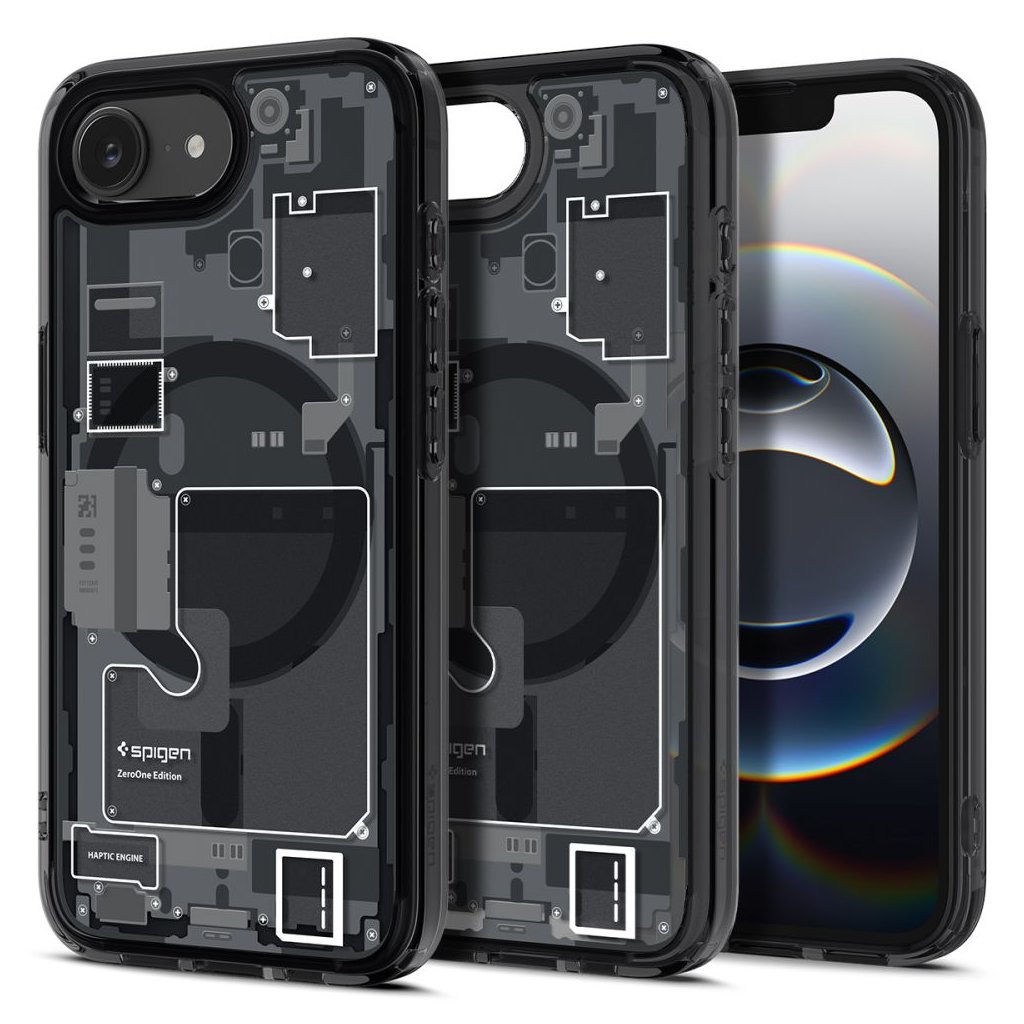- Kryt Ultra Hybrid Zero One sa pýši revolučným dizajnom, ktorý imituje pohľad do útrob vášho iPhonu 16e.