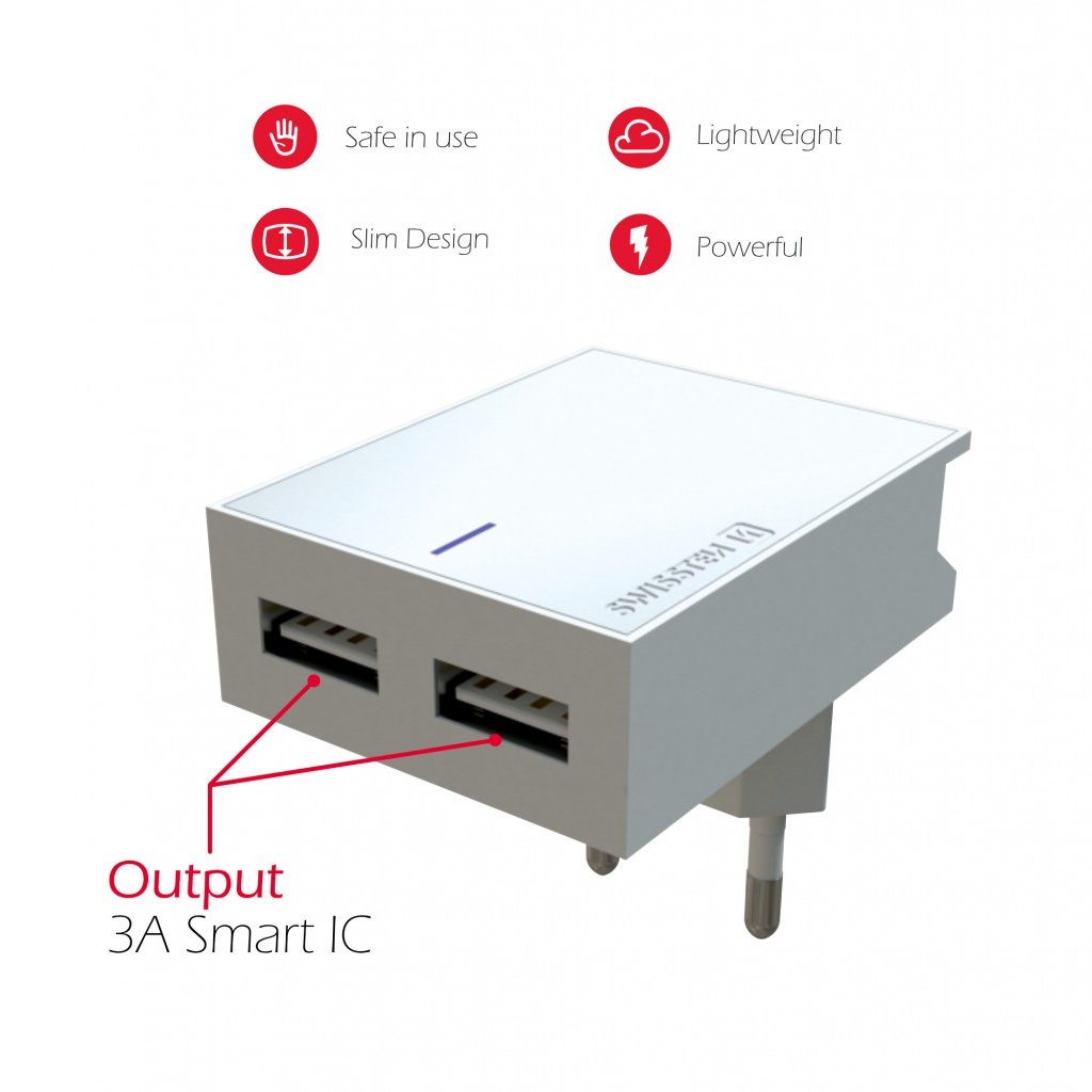Swissten Sieťový Adaptér Smart IC 2x USB 3A