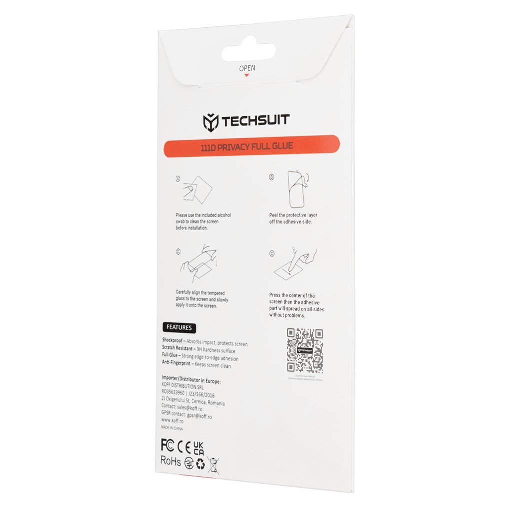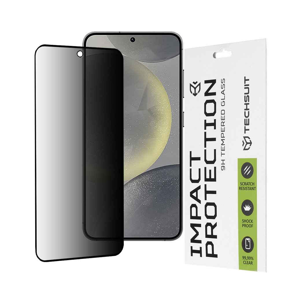Techsuit 111D Privacy Full Glue – ochrana displeja pre Samsung Galaxy S24 / S25 Displej je srdcom vášho telefónu a zároveň jeho najzraniteľnejšou časťou. Jeho ochrana však nemusí byť zložitá ani drahá. S ochranou displeja od značky Techsuit získate spoľahlivého partnera, ktorý uchová váš displej v dokonalom stave bez akýchkoľvek kompromisov vo funkčnosti či vzhľade. Dizajn a vlastnosti Táto celolepená ochranná fólia v čiernom prevedení je navrhnutá s ohľadom na maximálnu diskrétnosť a ochranu súkromia. Vďaka špeciálnej technológii je obsah displeja viditeľný iba pre používateľa, zatiaľ čo z bočných uhlov zostáva obrazovka tmavá a nečitateľná. Ochrana disponuje precíznym výrezom pre prednú kameru, čo zaisťuje jej plnú funkčnosť. Jej tenký profil a zaoblené hrany dokonale kopírujú dizajn displeja telefónu, čím zaisťujú esteticky čistý vzhľad a pohodlné používanie. Prečo zvoliť ochranu displeja Techsuit?- Inštalácia bez stresu a bublín: Vďaka pokročilej adhezívnej technológii je aplikácia ochrany Techsuit prekvapivo jednoduchá. Prípadné menšie vzduchové bubliny, ktoré môžu vzniknúť pri inštalácii, samy zmiznú počas 24-48 hodín. Inteligentný materiál zaistí dobré priľnutie a kvalitný výsledok aj bez veľkých skúseností s lepením skiel či fólií.