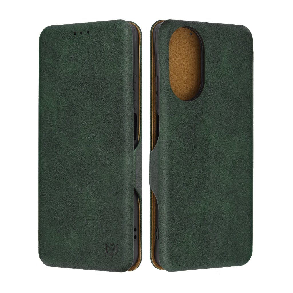 - Puzdro Techsuit Safe Wallet Plus zaujme na prvý pohľad svojím nadčasovým vzhľadom. Je vyrobené z kvalitnej syntetickej kože s jemnou textúrou, ktorá mu dodáva luxusný a mierne patinovaný vzhľad. Sýtozelený odtieň je elegantný a univerzálny, zatiaľ čo vnútorná podšívka v kontrastnej svetlohnedej farbe podčiarkuje jeho prémiový charakter.