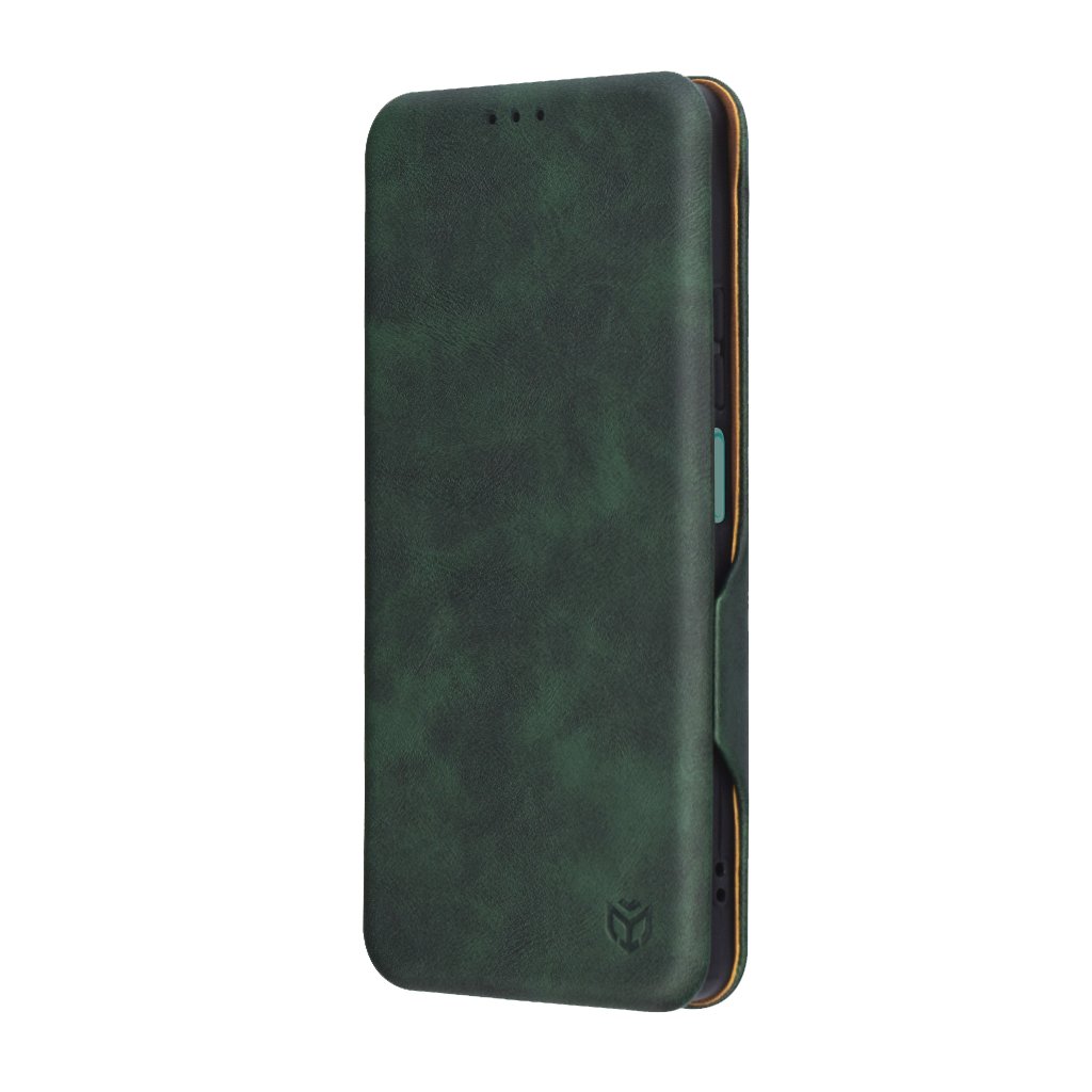 Puzdro sa pýši sofistikovaným dizajnom s povrchom imitujúcim brúsenú kožu v sýtom tmavozelenom odtieni, ktorý dodáva vášmu telefónu punc luxusu a originality. Vnútorná strana puzdra je vyhotovená v kontrastnej hnedej farbe, čo podčiarkuje jeho elegantný vzhľad. Ide o typ "flip" puzdra, ktoré poskytuje komplexnú ochranu celého zariadenia. Na prednej strane je decentne vyrazené logo značky Techsuit.