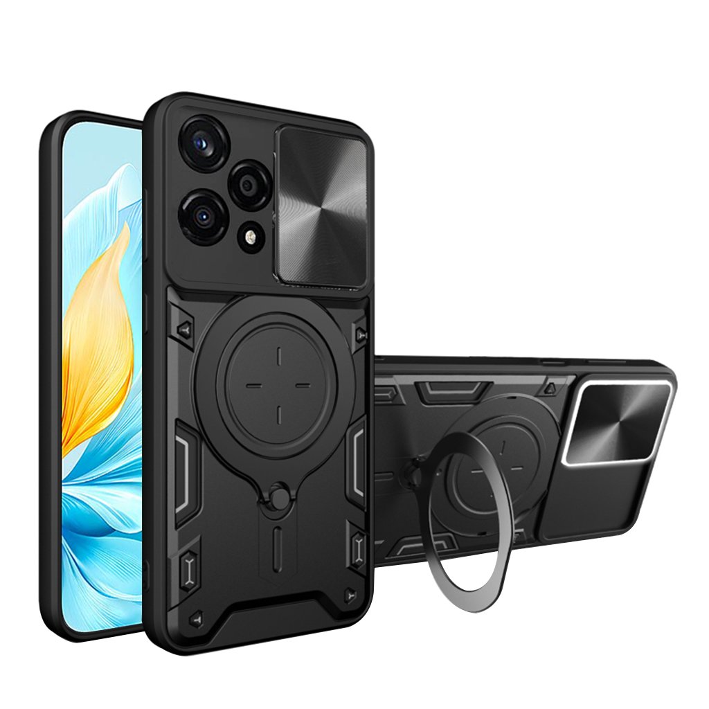 Techsuit CamGuard Pro Honor 200 Lite Čierna Predstavujeme Techsuit CamGuard Pro, robustné ochranné puzdro navrhnuté špeciálne pre váš Honor 200 Lite. Tento kryt v elegantnej čiernej farbe kombinuje špičkovú ochranu s premysleným dizajnom, ktorý podčiarkne moderný vzhľad vášho telefónu a zároveň zaistí jeho maximálnu bezpečnosť. Dizajn a funkčnosť Puzdro Techsuit CamGuard Pro sa pýši odolným a funkčným dizajnom. Jeho čierna farba a robustná konštrukcia dodávajú telefónu sofistikovaný, avšak športový vzhľad. Kľúčovým prvkom je integrovaná posuvná krytka fotoaparátu s elegantnou kartáčovanou kovovou textúrou, ktorá chráni objektívy pred poškriabaním a nečistotami, keď ich nepoužívate. Na zadnej strane nájdete aj multifunkčný prstenec, ktorý slúži ako praktický stojan pre pohodlné sledovanie obsahu v horizontálnej polohe a zároveň ako bezpečný úchyt pre prst. Tento prstenec je navyše kompatibilný s magnetickými držiakmi do auta, čo zvyšuje jeho praktickosť. Puzdro je vyrobené z kombinácie mäkkého TPU a pevného PC materiálu, čo zaisťuje vynikajúce tlmenie nárazov a ochranu proti pádom. Značka Techsuit: Kvalita, na ktorú sa môžete spoľahnúť Značka Techsuit predstavuje inteligentné riešenie pre každého, kto vyžaduje prvotriednu ochranu za rozumnú cenu. Prečo je Techsuit tou správnou voľbou pre vaše zariadenie?- Európsky štandard kvality a materiálov: Na rozdiel od bezejmenných krytov s pochybným pôvodom sú produkty Techsuit vyrobené zo starostlivo vybraných a zdravotne nezávadných materiálov. To zaručuje nielen dlhú životnosť a odolnosť proti každodennému opotrebovaniu, ale aj bezpečnosť pre vás a vaše okolie.