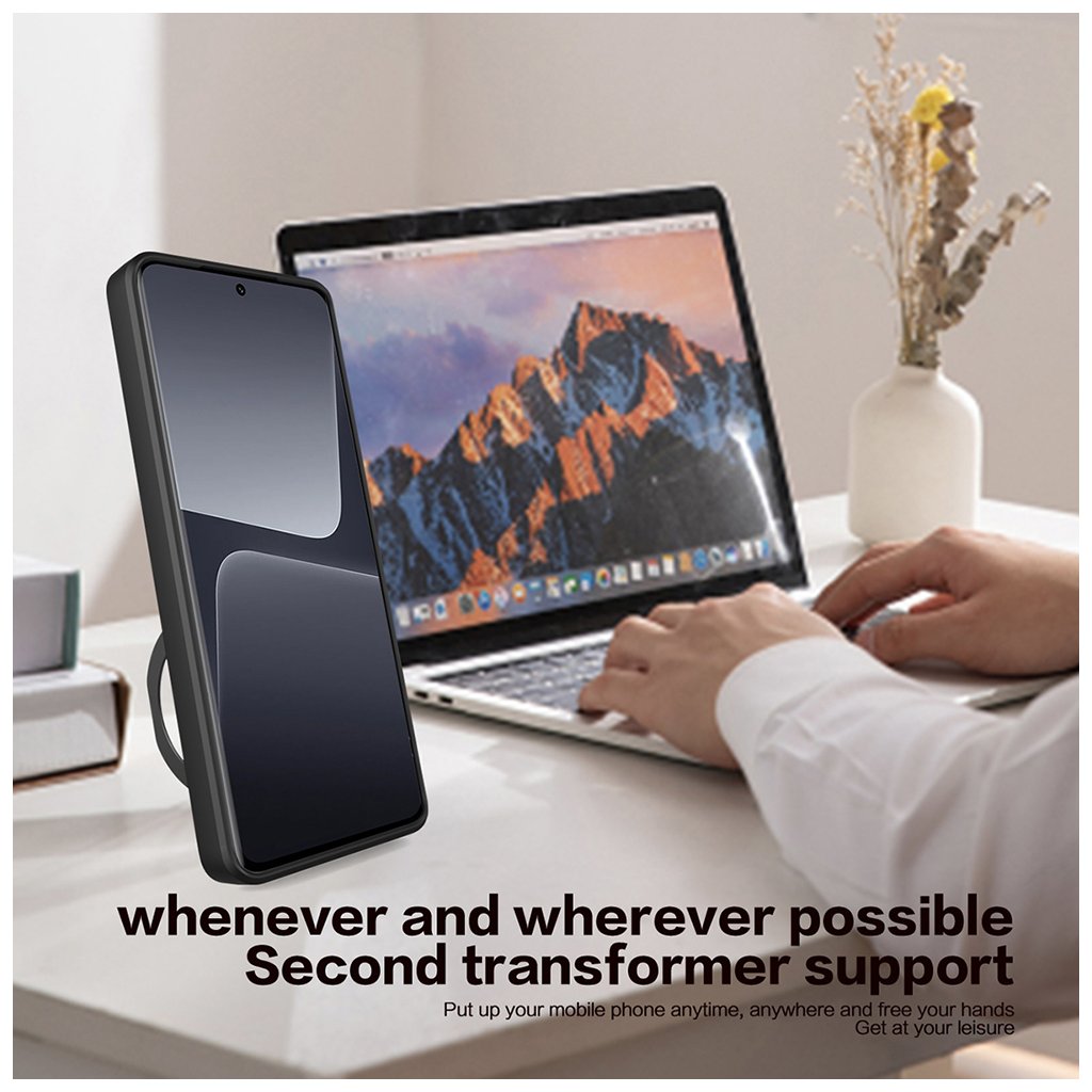 - Na zadnej strane puzdra nájdete aj integrovaný kovový krúžok, ktorý slúži ako praktický stojan pre pohodlné sledovanie obsahu alebo ako bezpečné pútko pre lepší úchop telefónu.