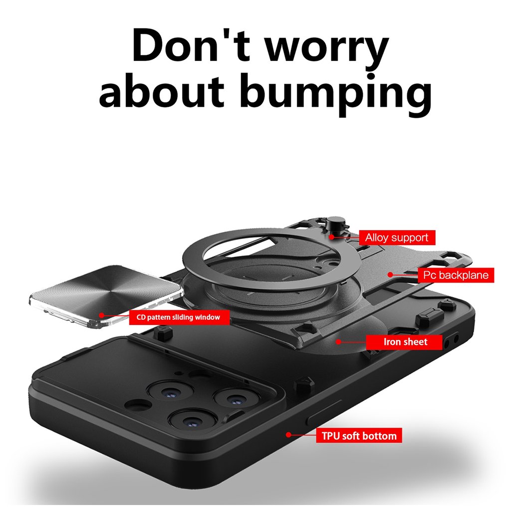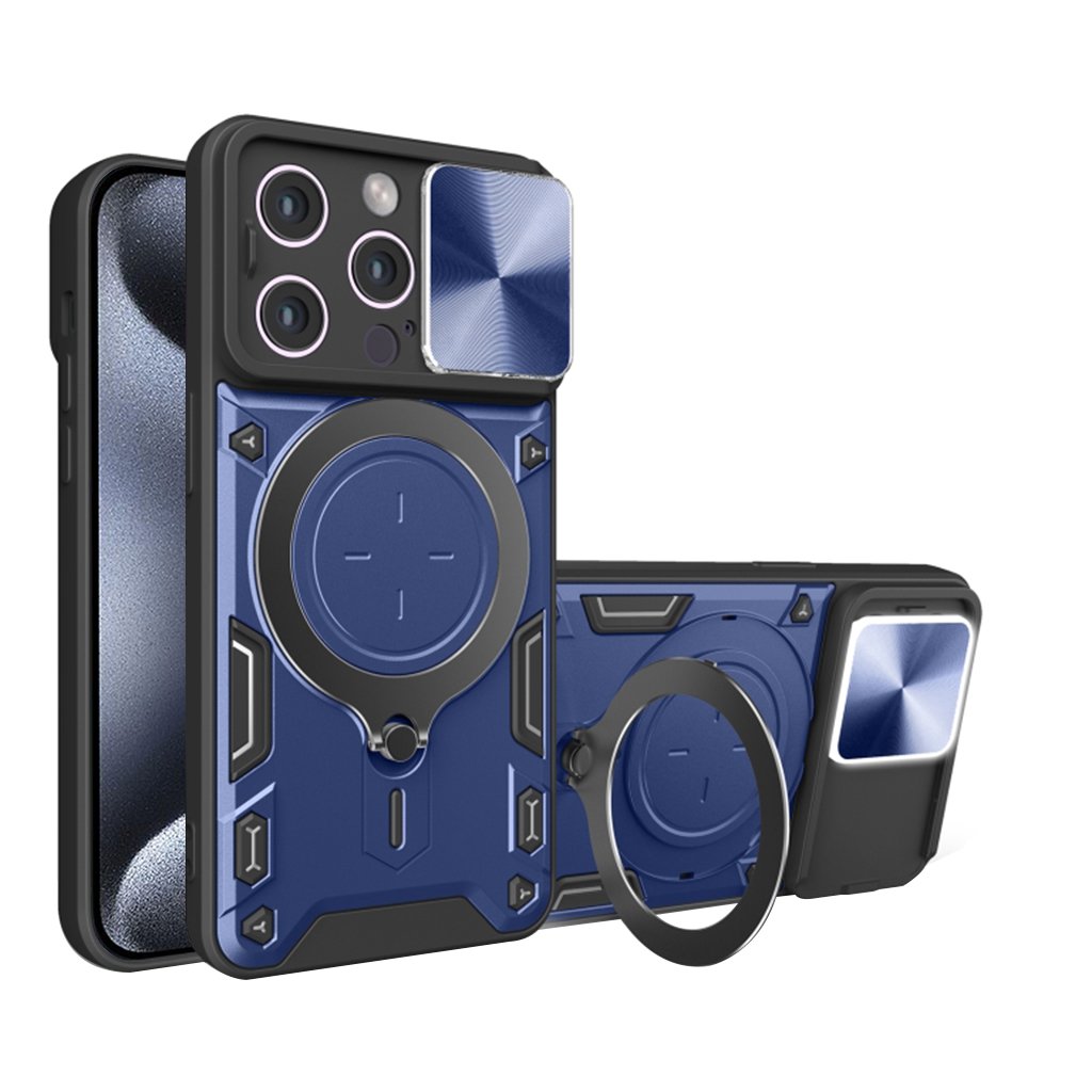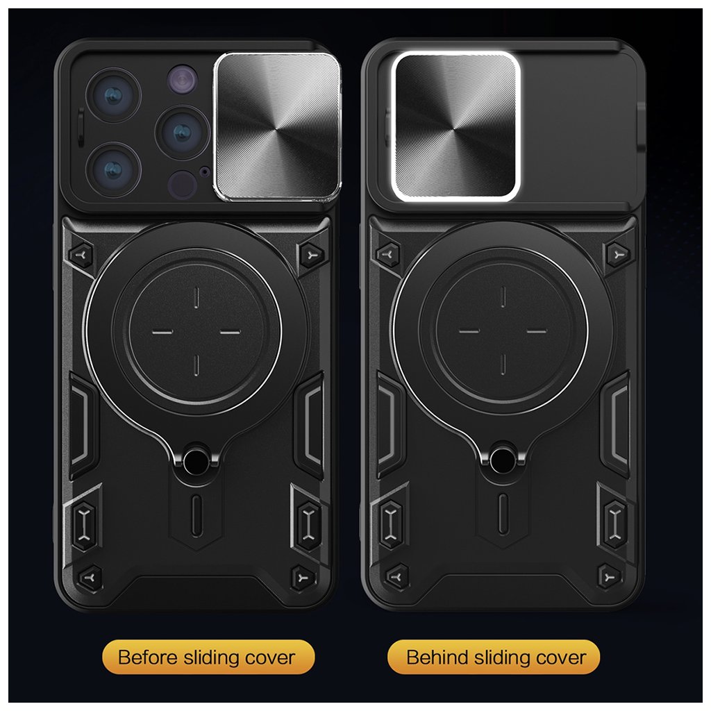 Jedným z kľúčových prvkov je integrovaný posuvný kryt fotoaparátu s elegantnou textúrou brúseného kovu (CD pattern). Ten spoľahlivo chráni citlivé objektívy vášho iPhone 15 Pro pred poškriabaním a nečistotami, a zároveň umožňuje rýchly prístup k fotoaparátu, kedykoľvek ho potrebujete. Ďalšou praktickou funkciou je otočný krúžok na zadnej strane, ktorý slúži ako stabilný stojan pre pohodlné sledovanie obsahu alebo ako bezpečný úchyt pre lepšiu manipuláciu s telefónom. Tento krúžok je navyše vybavený integrovaným kovovým plátom, ktorý umožňuje jednoduché pripevnenie telefónu k magnetickým držiakom v aute.