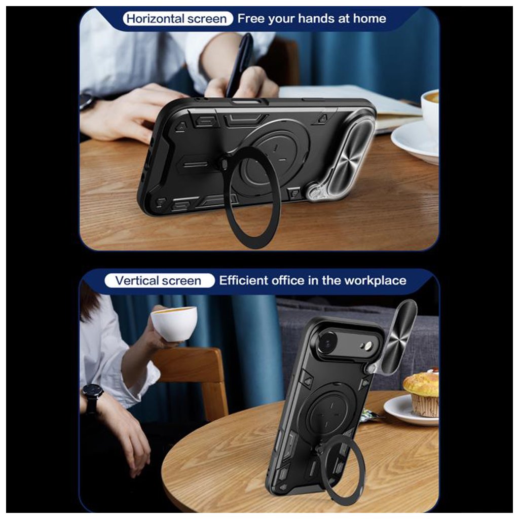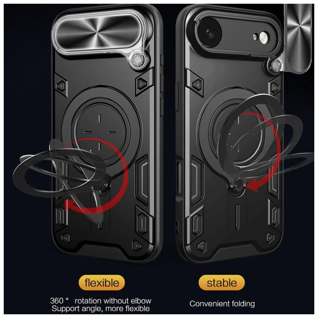 Jedným z kľúčových prvkov je integrovaná posuvná krytka fotoaparátu s elegantným CD vzorom. Tá nielenže chráni citlivé šošovky pred poškriabaním a nečistotami, ale zároveň zaisťuje vaše súkromie. Na zadnej strane nájdete aj otočný krúžok o 360°, ktorý slúži ako praktický stojanček pre sledovanie obsahu vo vertikálnej aj horizontálnej polohe, a zároveň ako bezpečný úchyt pre telefón. Vďaka integrovanému magnetickému prvku je puzdro plne kompatibilné s magnetickými držiakmi do auta, čo zvyšuje jeho praktickosť.