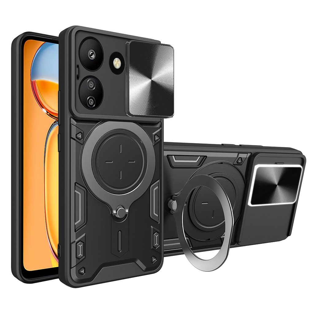 * **Názov produktu:** Techsuit CamGuard Pro * **Kompatibilita:** Xiaomi Redmi 13C 4G, Xiaomi Poco C65 * **Farba:** Čierna * **Materiál:** Vysoko kvalitné, zdravotne nezávadné materiály * **Funkcie:** * Integrovaný posuvný kryt fotoaparátu * Otočný prstenec (stojan/úchyt) * Zosilnené rohy pre ochranu proti pádom * Precízne výrezy pre všetky porty a tlačidlá * Štruktúrovaný povrch pre lepší úchop * **Certifikácia:** Spĺňa európske štandardy kvality * **Výrobca:** TechsuitDodatočné parametre