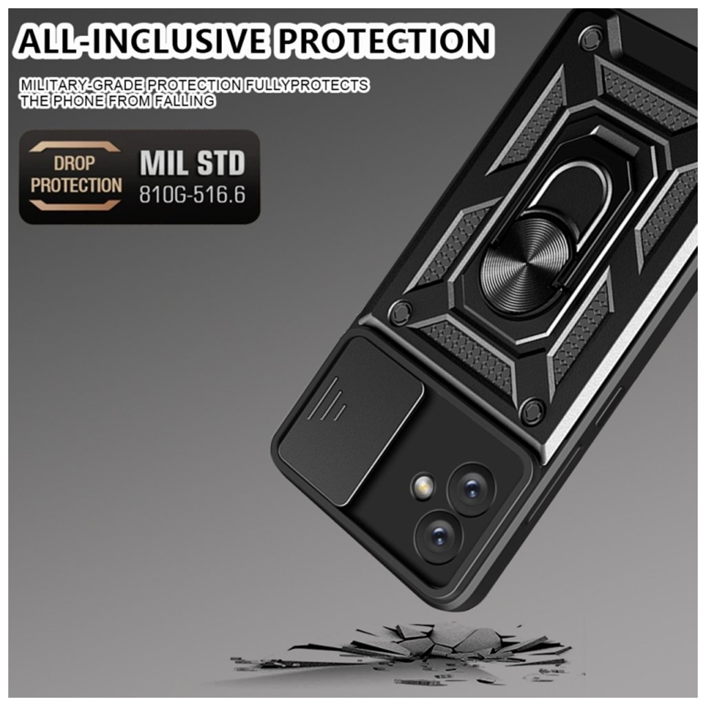 Kľúčovým prvkom je integrovaný posuvný kryt fotoaparátu, ktorý spoľahlivo chráni šošovky pred poškriabaním a nečistotami, keď nie sú používané. Ďalšou praktickou súčasťou je otočný kovový krúžok na zadnej strane, ktorý slúži ako bezpečný držiak pre prst a zároveň ako praktický stojan pre pohodlné sledovanie obsahu.