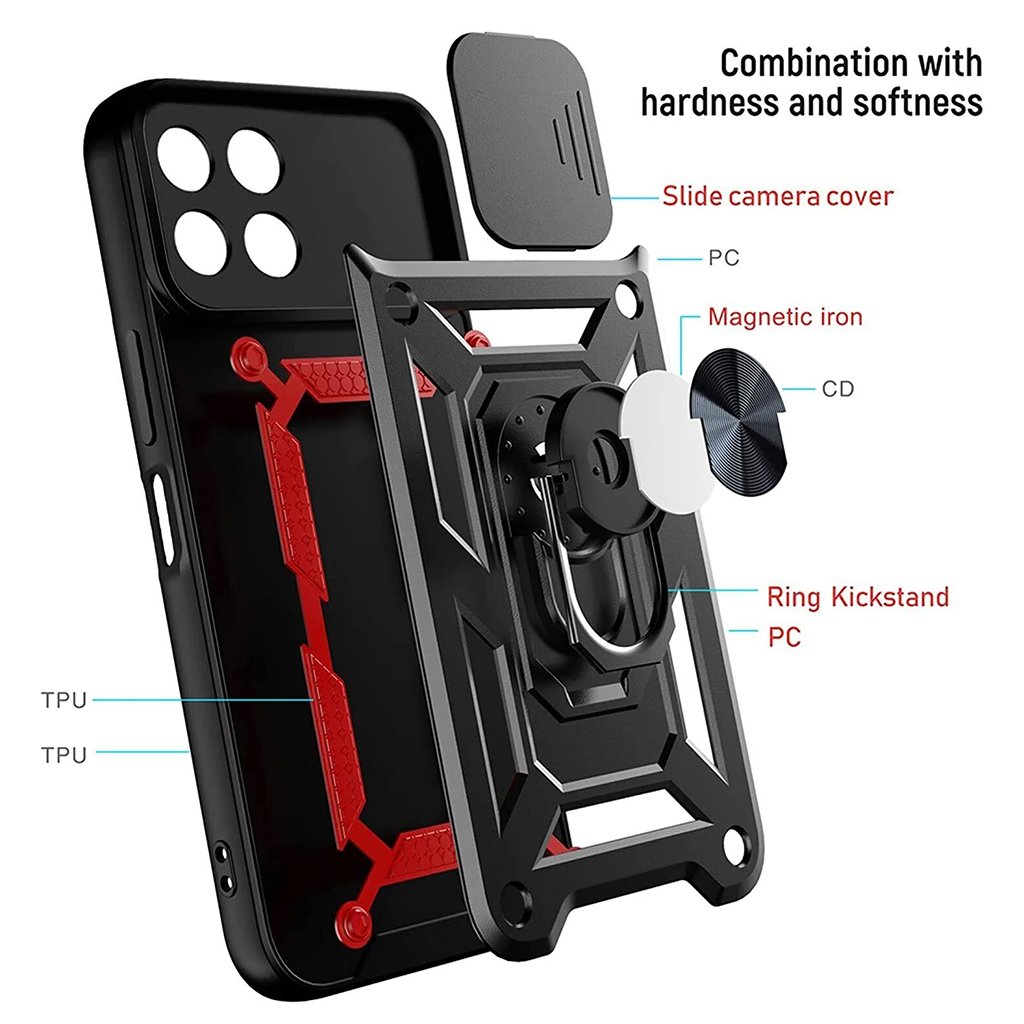 Predstavujeme Techsuit CamShield, robustné ochranné puzdro navrhnuté špeciálne pre váš Honor X8b, ktoré kombinuje prvotriednu ochranu s funkčným dizajnom. Toto puzdro v elegantnej čiernej farbe je stelesnením inteligentného riešenia pre každého, kto hľadá spoľahlivú ochranu za rozumnú cenu. Dizajn a parametre Puzdro Techsuit CamShield sa pýši odolnou konštrukciou, ktorá je výsledkom kombinácie dvoch materiálov: mäkkého TPU a tvrdého PC (polykarbonátu). Táto kombinácia zaisťuje optimálne tlmenie nárazov a odolnosť proti poškriabaniu.- Zadná strana puzdra je opatrená robustným, geometrickým vzorom s textúrovanými plochami, ktoré nielen dodávajú puzdru moderný a drsný vzhľad, ale taktiež zlepšujú úchop a minimalizujú riziko vykĺznutia telefónu z ruky.