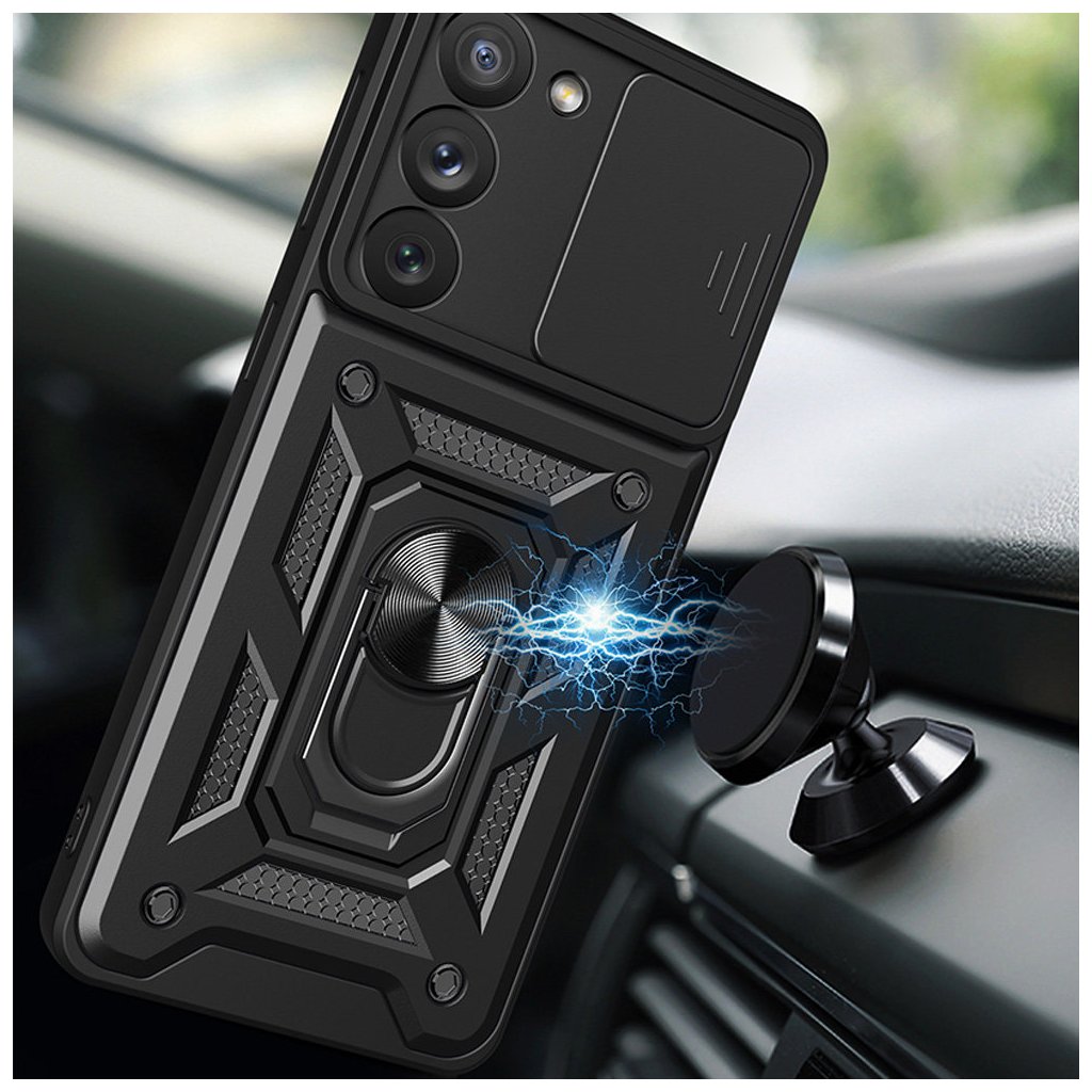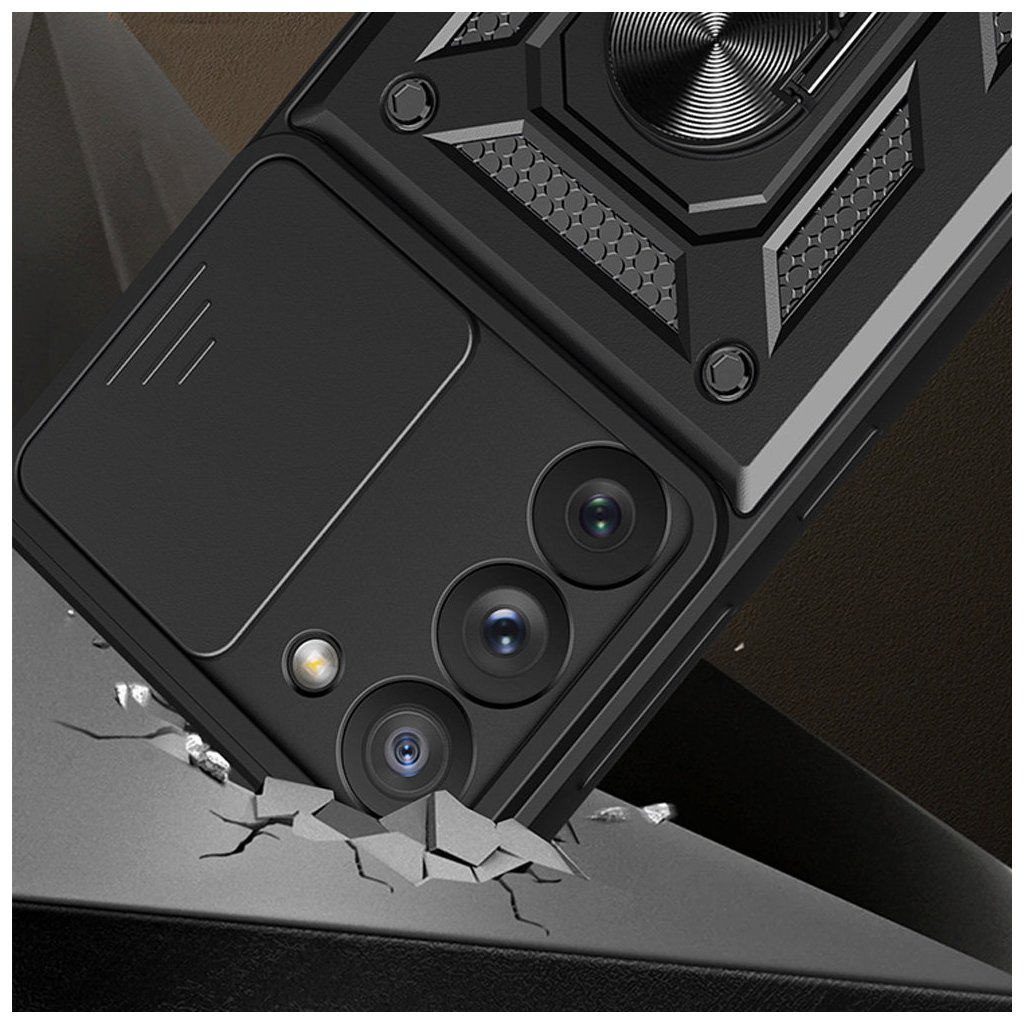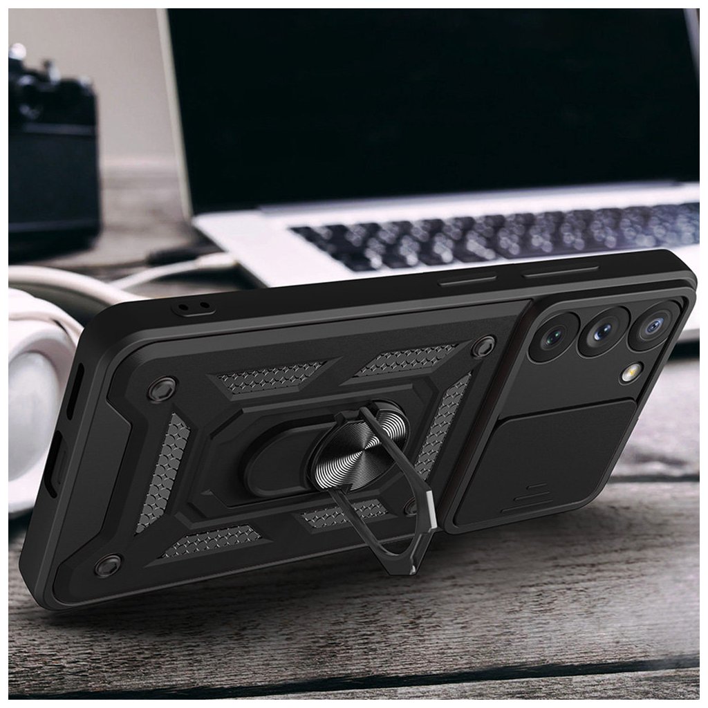Dizajn a parametre: Puzdro Techsuit CamShield v čiernej farbe sa vyznačuje robustným a moderným dizajnom, ktorý kombinuje estetiku s maximálnou funkčnosťou.