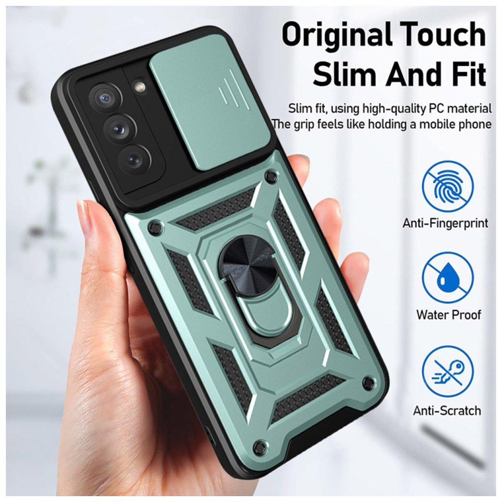 - Ochrana súkromia a objektívu: Integrovaný posuvný kryt fotoaparátu (CamShield) spoľahlivo chráni objektívy pred poškriabaním, nečistotami a zároveň zaisťuje vaše súkromie.