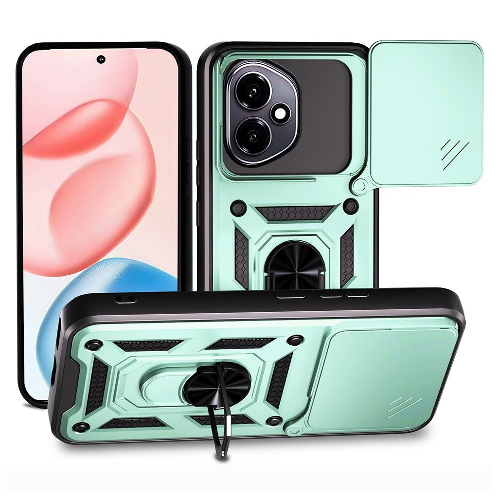* Značka: Techsuit * Séria: CamShield Series * Model telefónu: Honor 400 * Farba: Zelená * Materiál: Vybrané, zdravotne nezávadné materiály * Dizajn: Robustné puzdro s modernými prvkami a geometrickými detailmi * Ochrana fotoaparátu: Posuvný kryt fotoaparátu (CamShield) * Integrovaný prstenec: Kovový prstenec slúžiaci ako stojanček a úchyt * Ochrana displeja a fotoaparátu: Zvýšené okraje * Presné spracovanie: Výrezy pre konektory, mikrofóny, reproduktory a fotoaparáty; funkčné tlačidláVýhody produktu:
