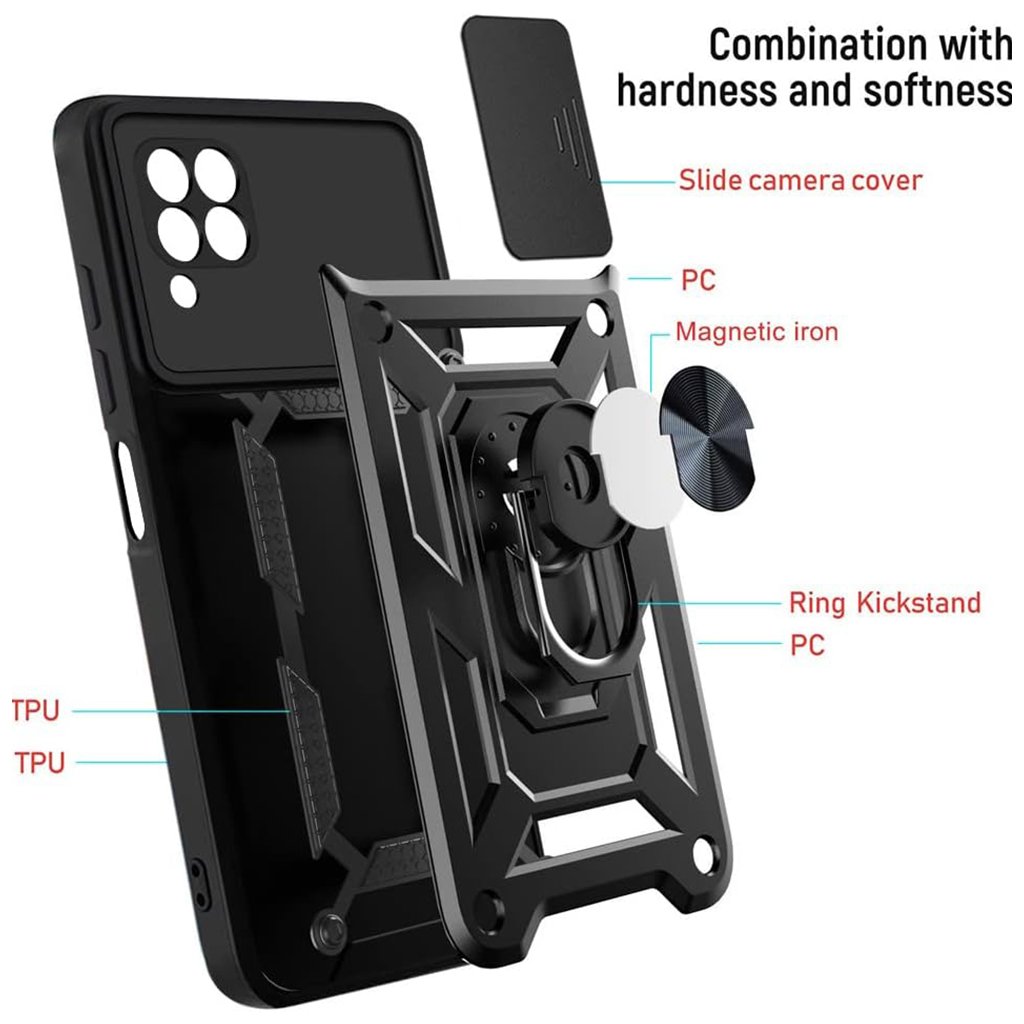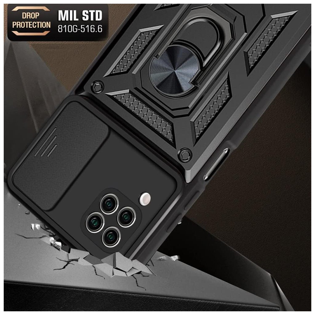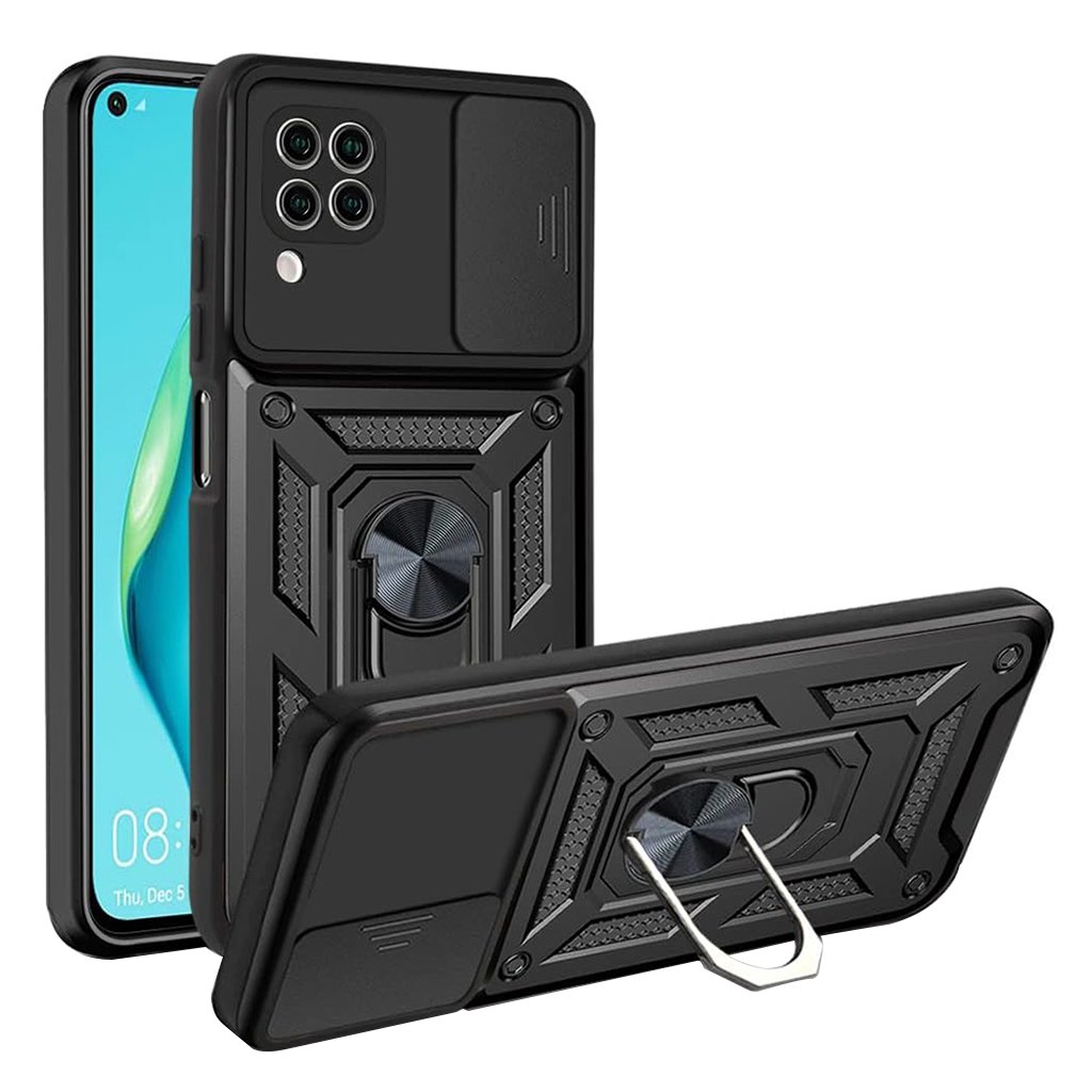 Puzdro Techsuit CamShield Series pre Huawei P40 Lite v elegantnej čiernej farbe kombinuje robustnú ochranu s praktickými prvkami. Jeho dizajn je inšpirovaný taktickým vzhľadom, s výraznými textúrovanými plochami a zosilnenými rohmi, ktoré efektívne absorbujú nárazy a chránia telefón pred poškodením pri pádoch. Kľúčovým prvkom je integrovaný posuvný kryt fotoaparátu, ktorý chráni šošovky pred poškriabaním a nechceným znečistením, a zároveň zaisťuje vaše súkromie. Na zadnej strane sa nachádza aj otočný prstenec, ktorý slúži ako praktický stojan pre sledovanie obsahu alebo ako bezpečný úchyt pre pohodlnejšiu manipuláciu s telefónom. Tento prstenec je navyše kompatibilný s magnetickými držiakmi do auta. Puzdro je vyrobené z odolného materiálu, ktorý zaisťuje dlhú životnosť a spoľahlivú ochranu vášho zariadenia.