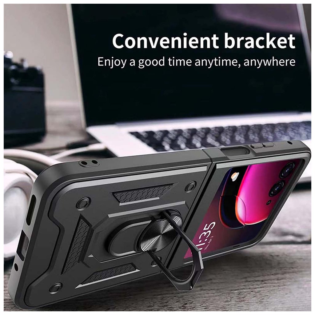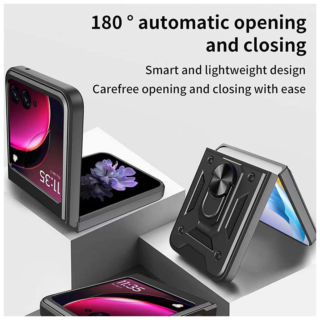 Kryt Techsuit CamShield Series v elegantnej čiernej farbe je stelesnením funkčného a odolného dizajnu.- Dvojdielna konštrukcia: Dokonale obopína obe časti vášho skladacieho telefónu a zaisťuje komplexnú ochranu.